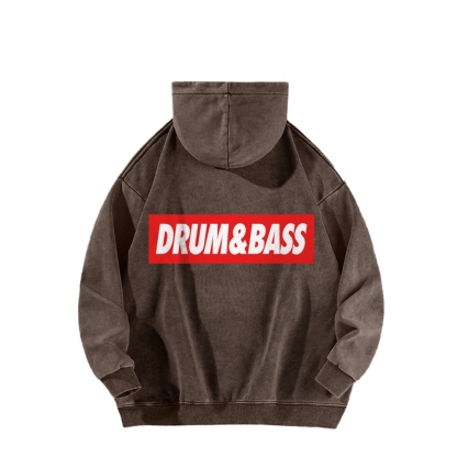 Drum & Bass Red Flag Front And Back Printing Vintage Washed Hoodie