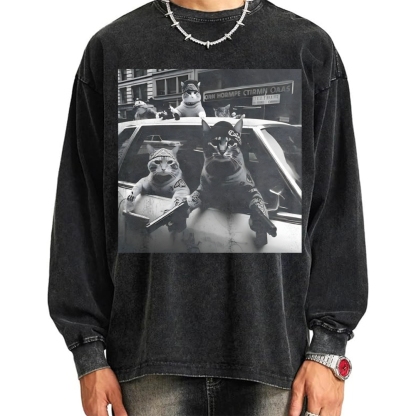 Funny Cat Gang Vintage Washed Sweatshirts