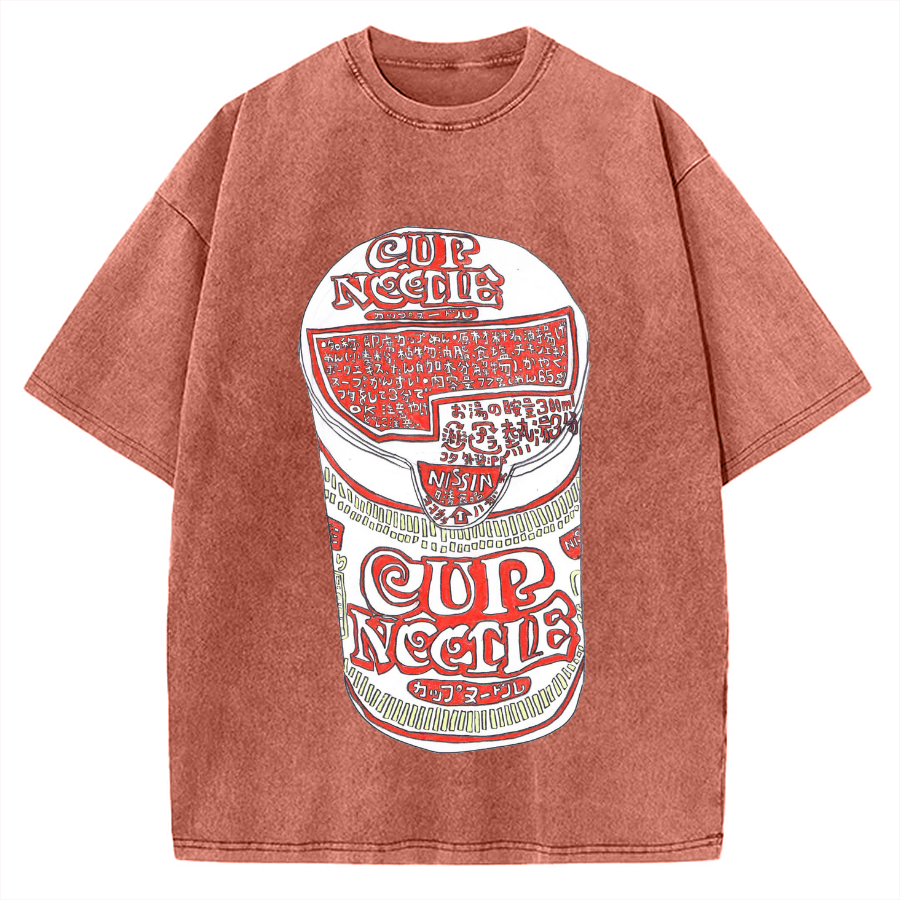 Japanese Cup Noodle Hand-drawn style Vintage Washed T-shirt