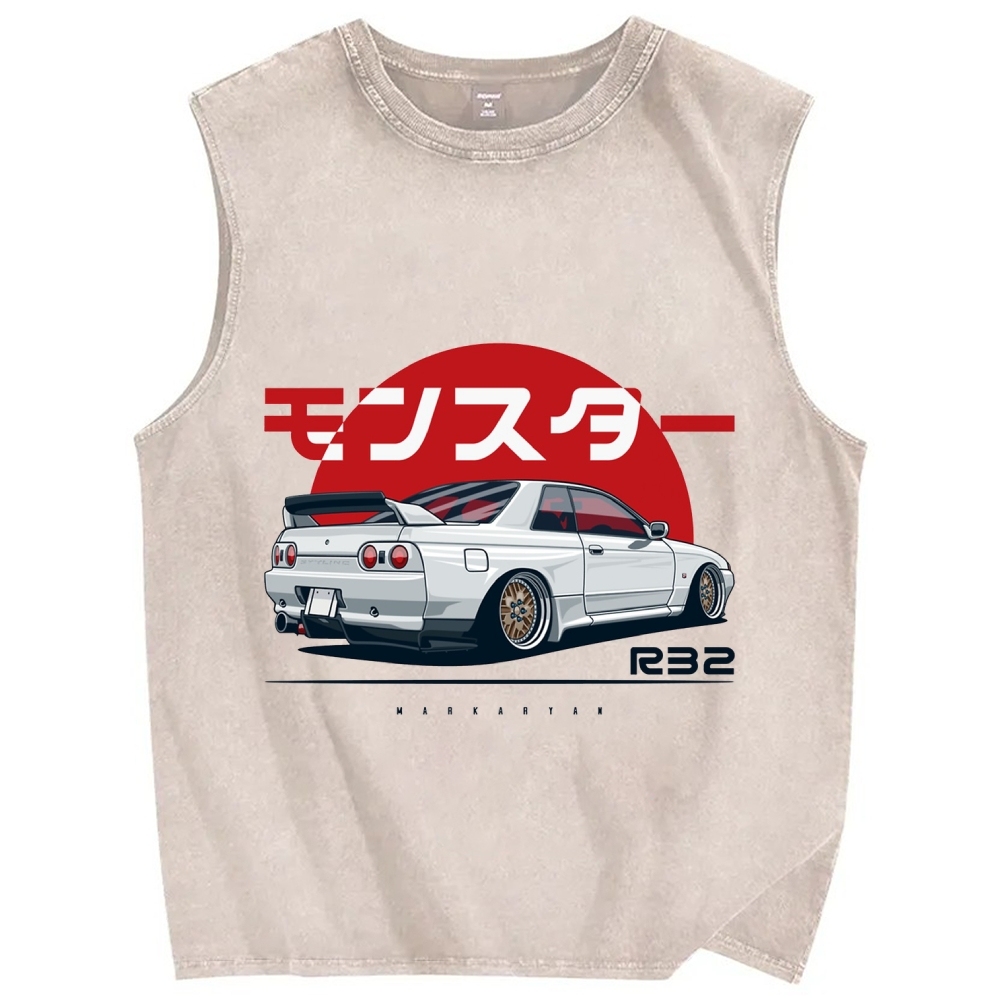 Monster. Skyline R32 GTR Vintage Distressed Washed Tank Top