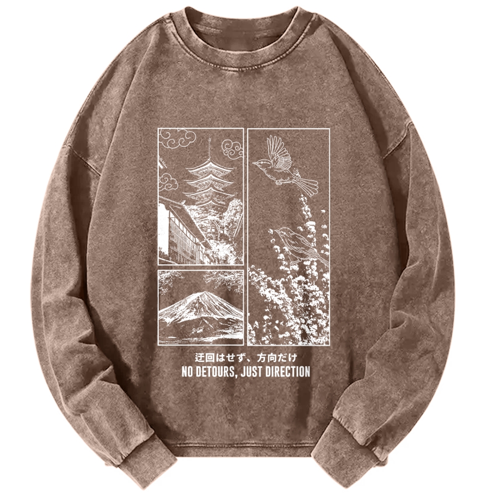 NO DETOURS, JUST DIRECTION Japanese View Vintage Washed Sweatshirts