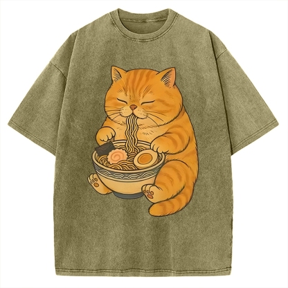 Orange Cat Eating Ramen Vintage Washed T-shirt
