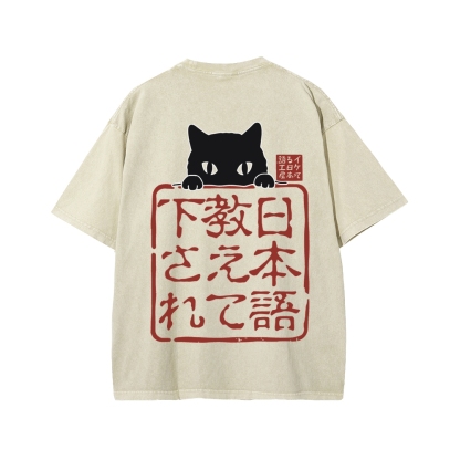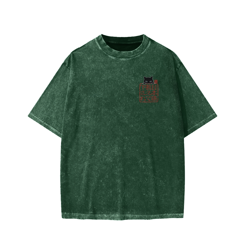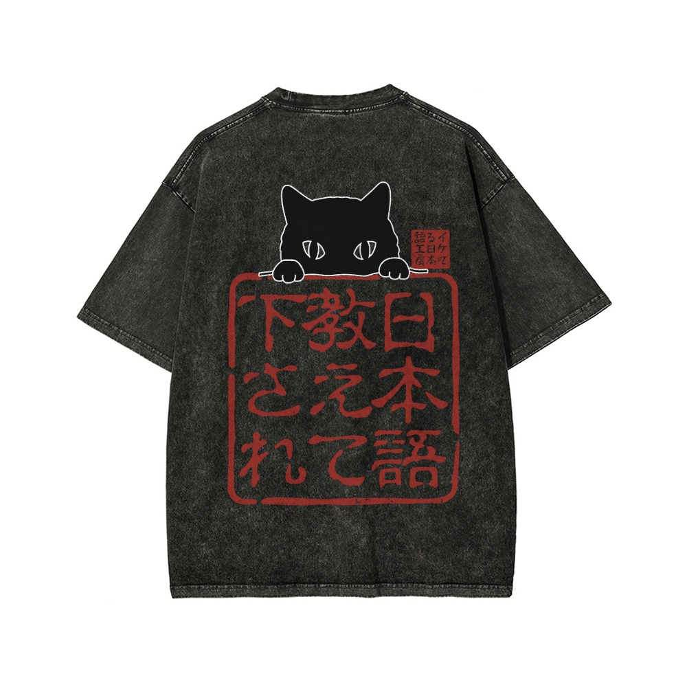 Please Teach Cat Japanese Front And Back Printing Washed T-shirt