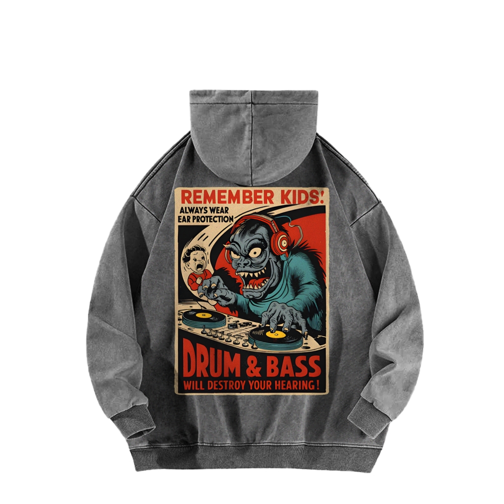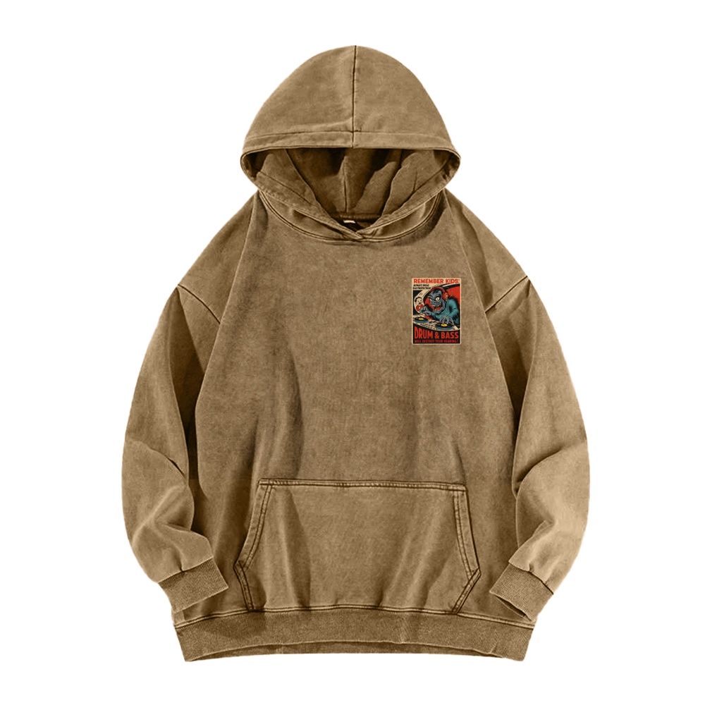 Remember Kids - Drum and Bass Will Destroy Your Hearing Front And Back Printing Vintage Washed Hoodie