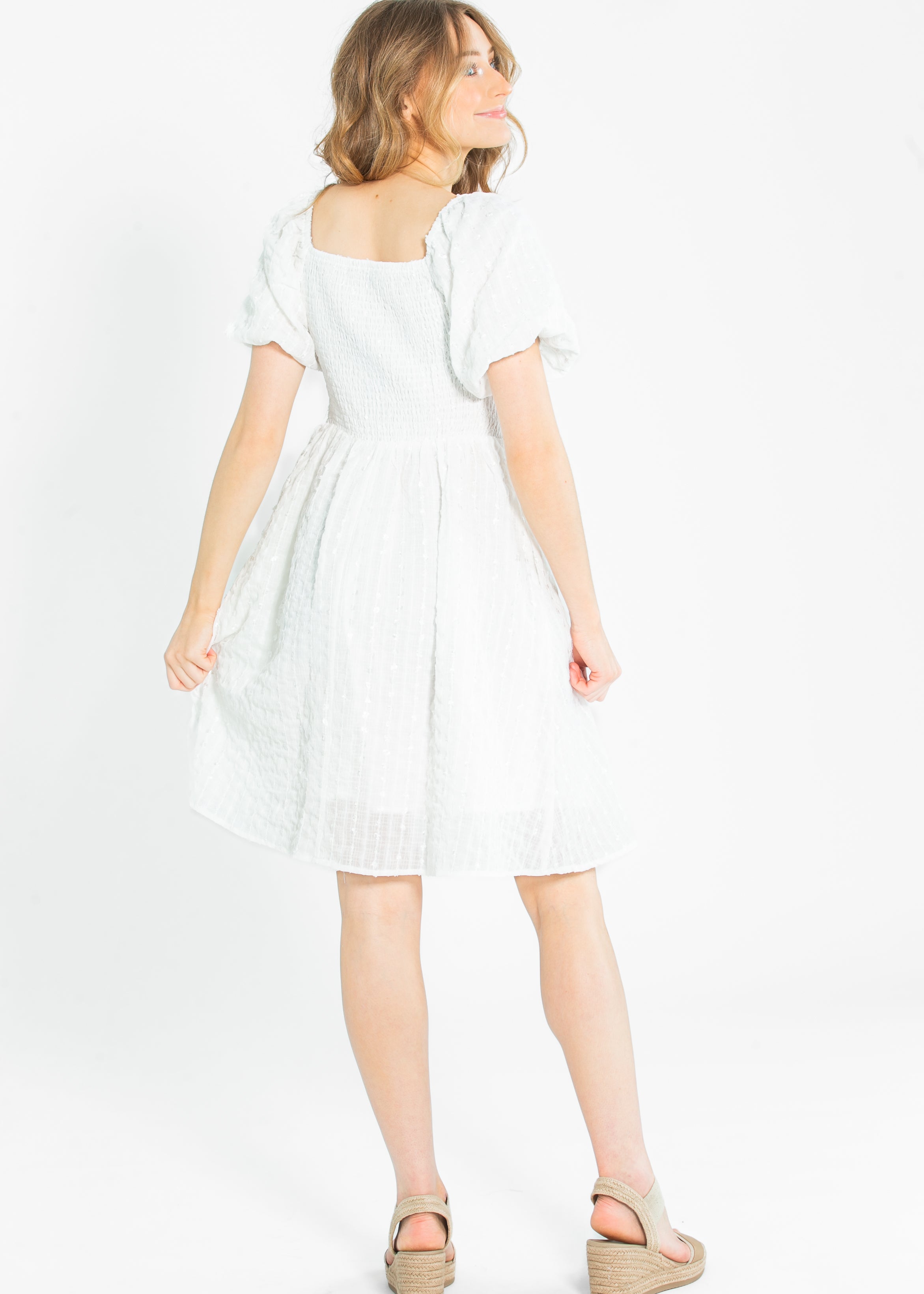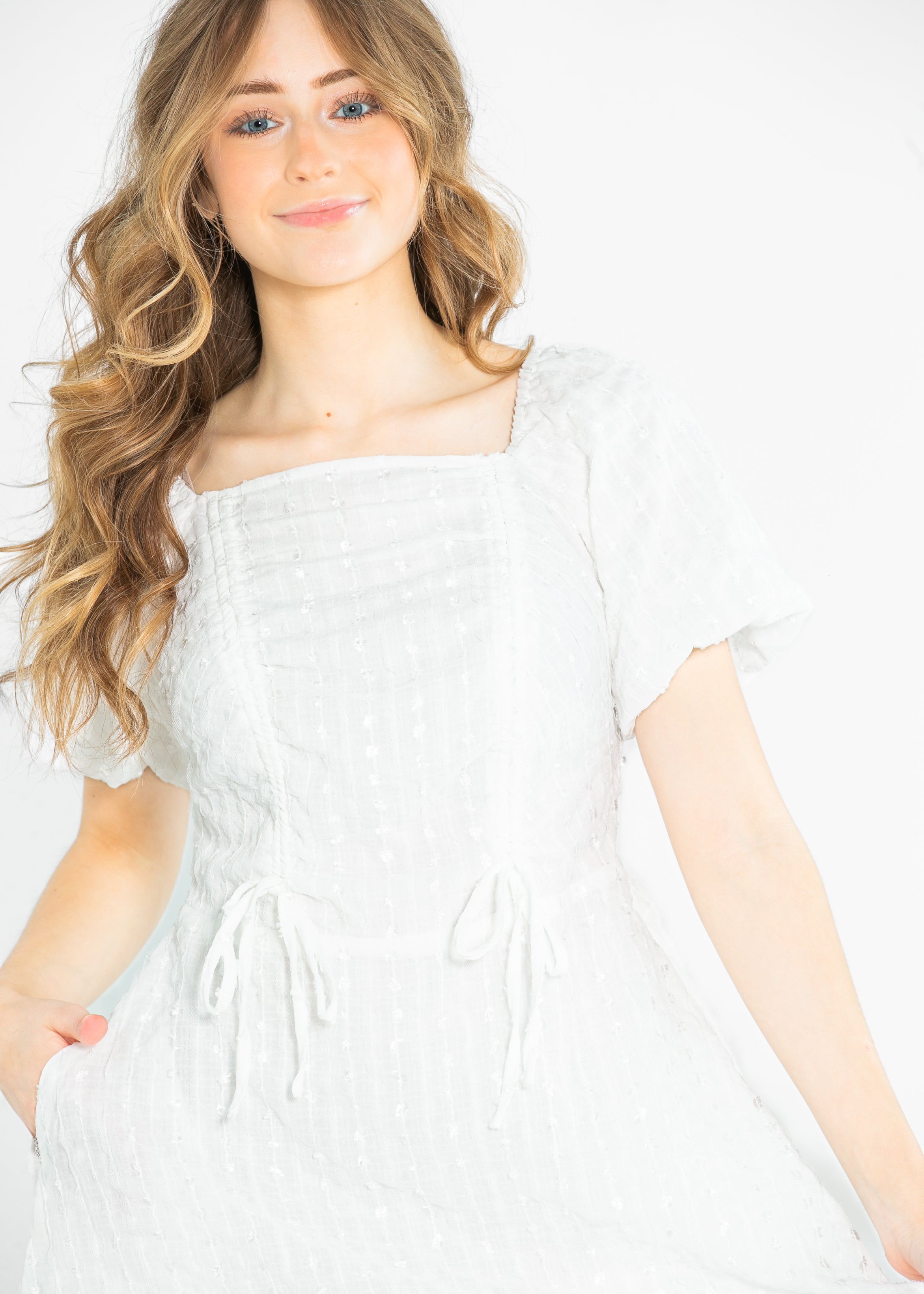 Saylor Square Neckline White Midi Dress - FINAL SALE