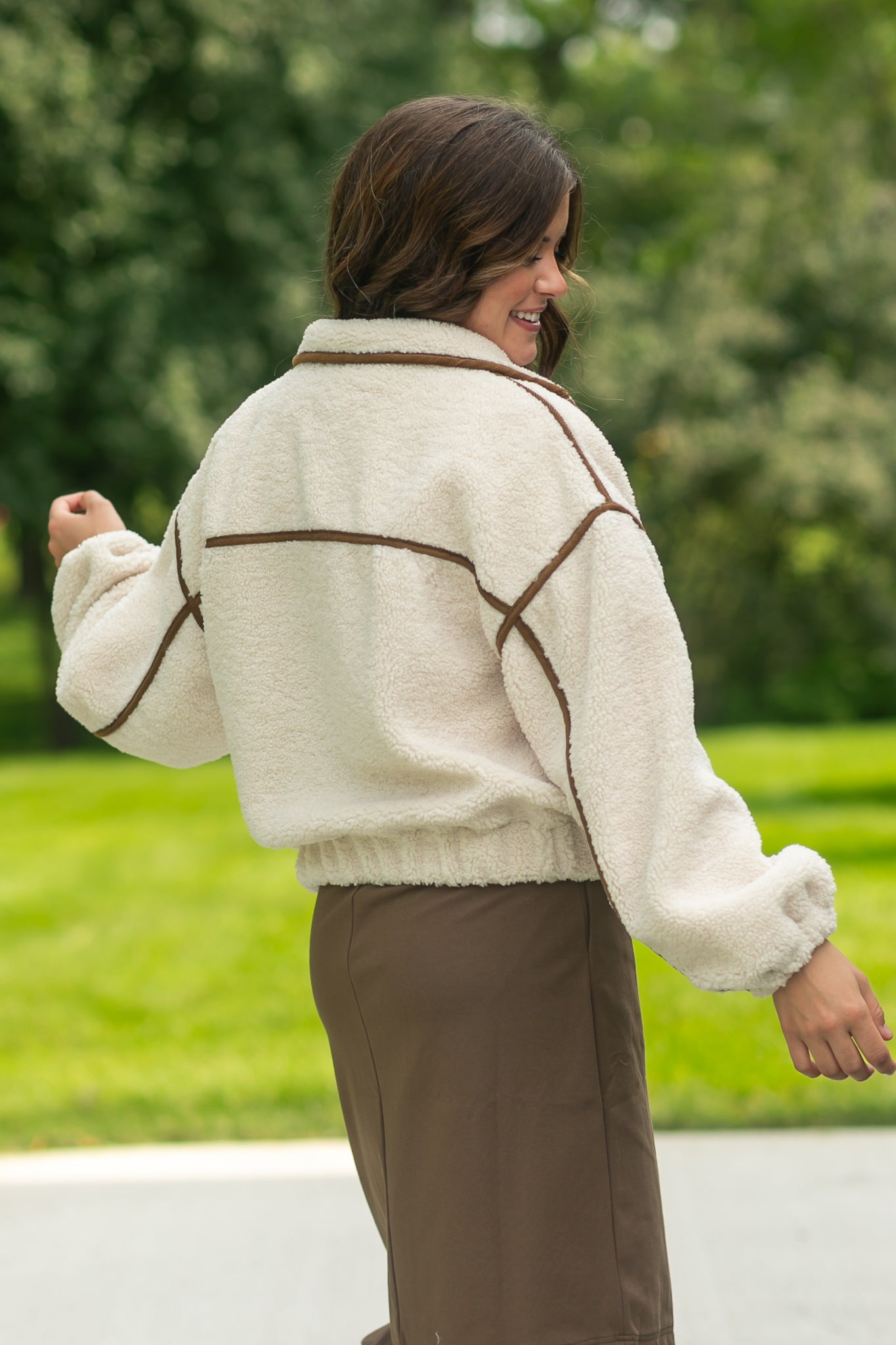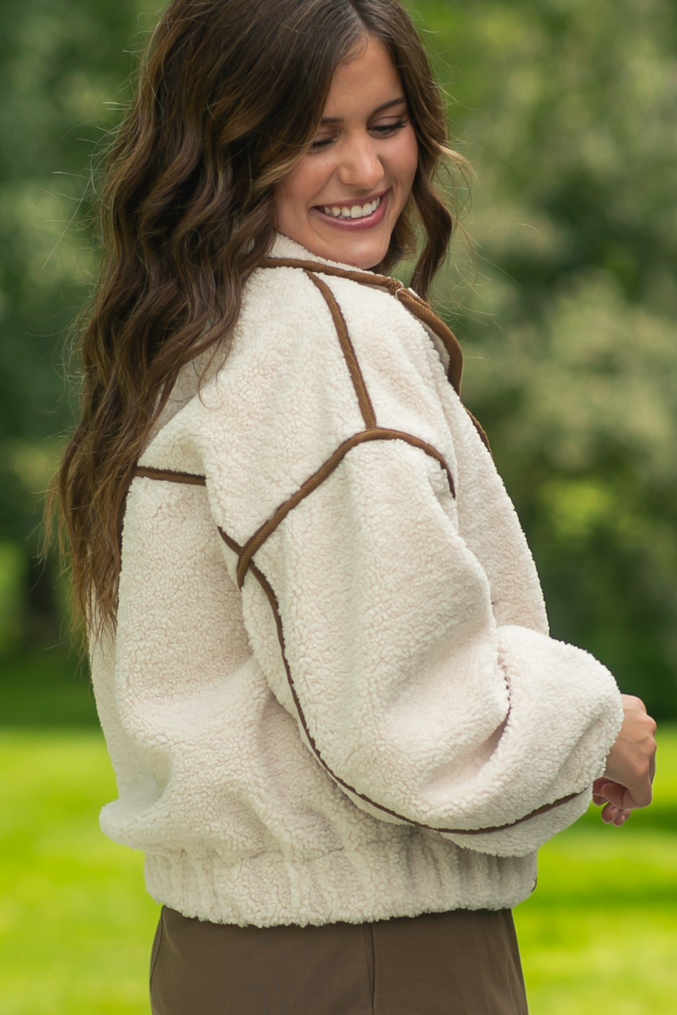 elan Fleece Ivory Bomber Jacket - FINAL SALE