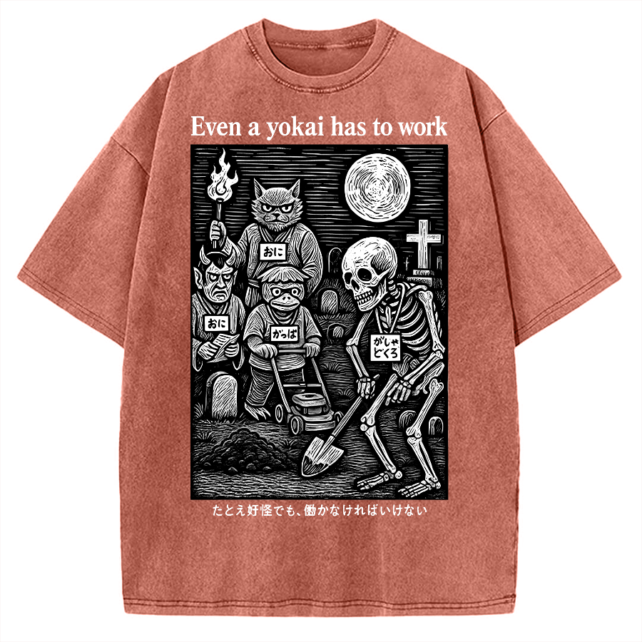 Even A Yokai Has To Work Vintage Washed T-shirt