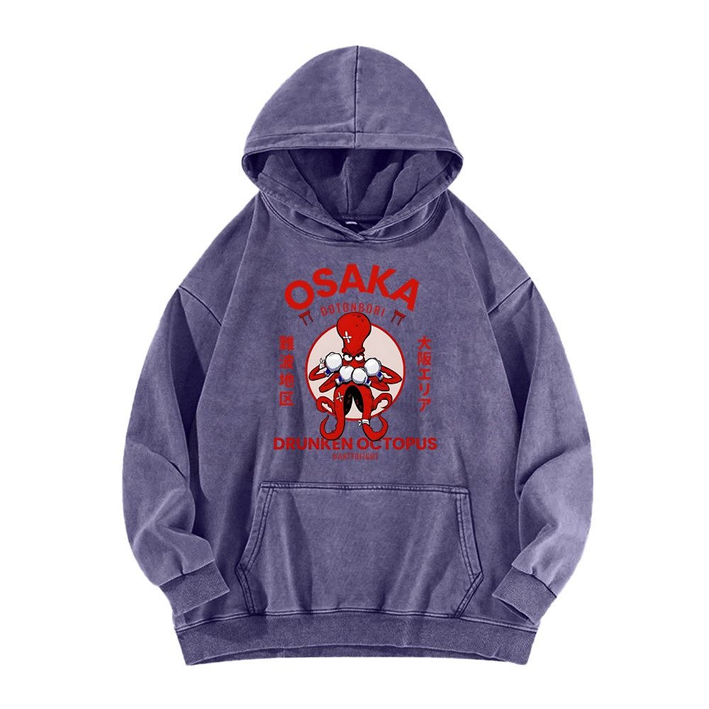 Osaka Dotonbori Drunken Octopus Vintage Washed Hoodie