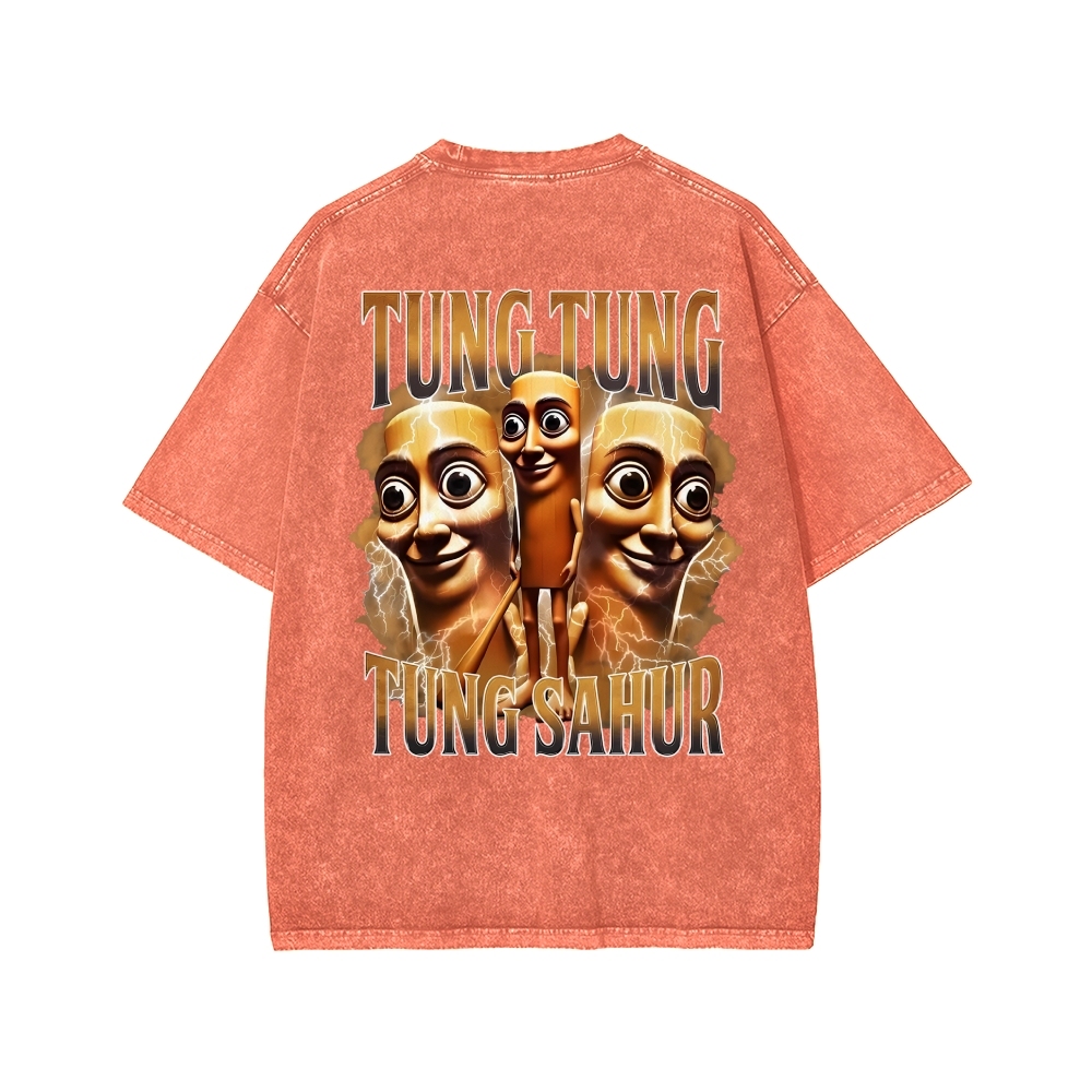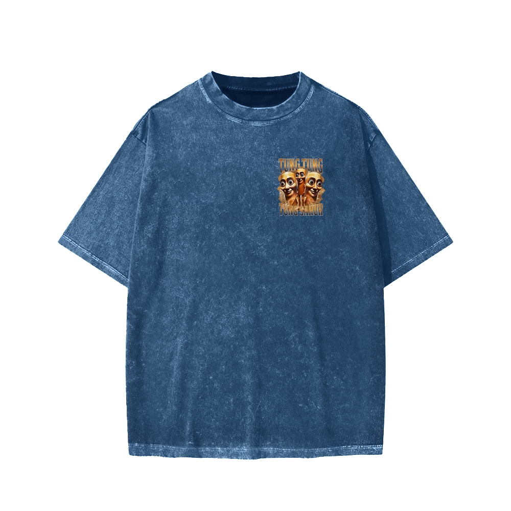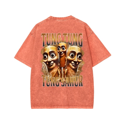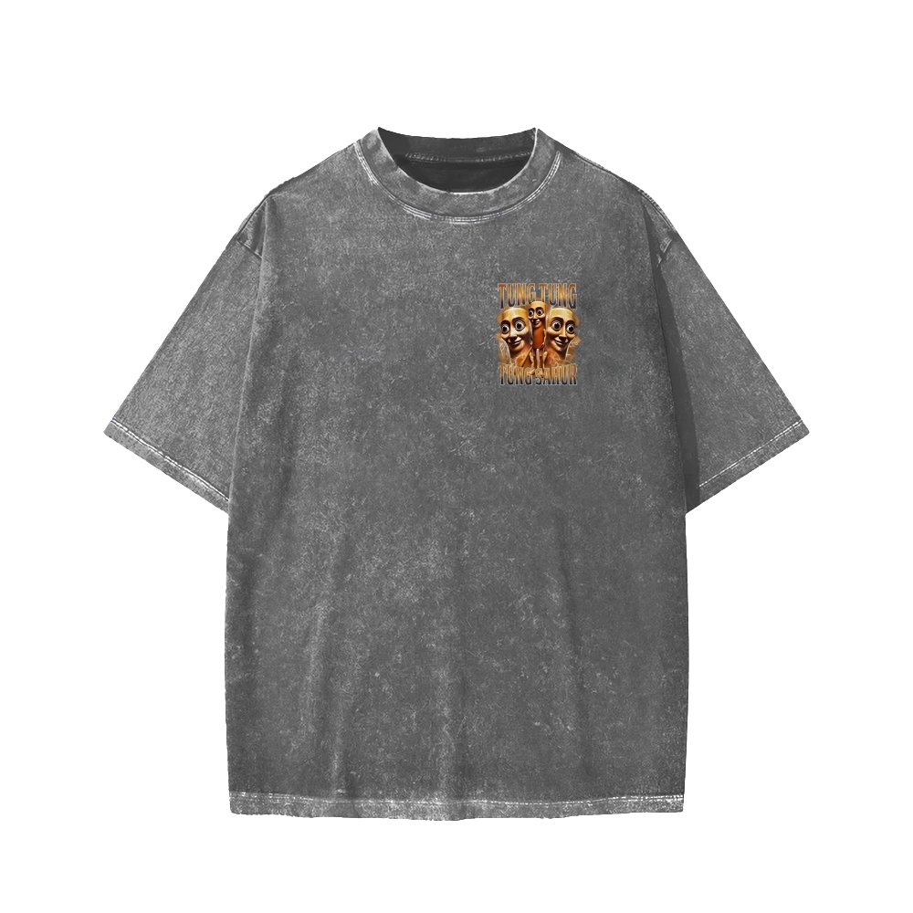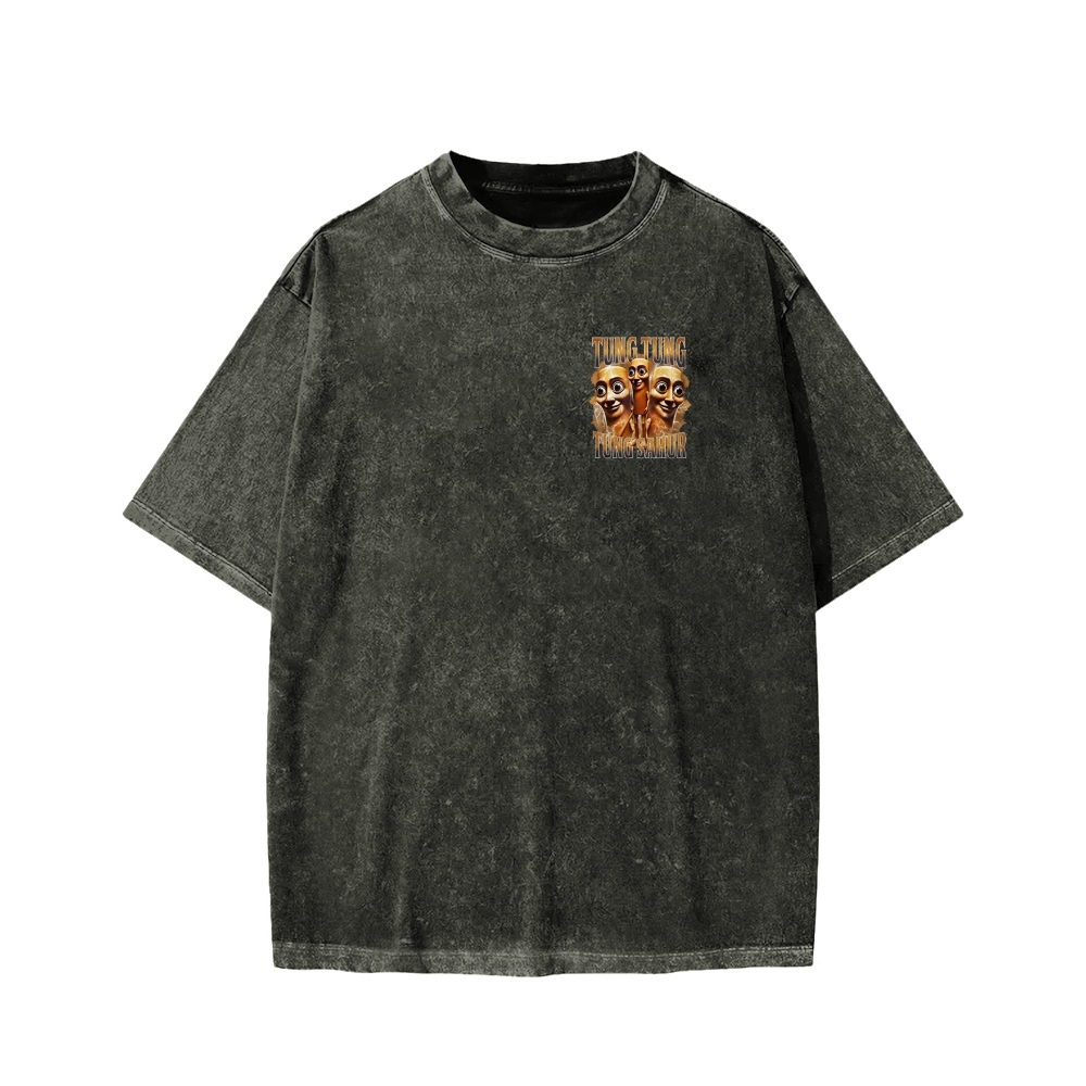 TUNG TUNG TUNG SAHUR Front And Back Printing Washed T-shirt