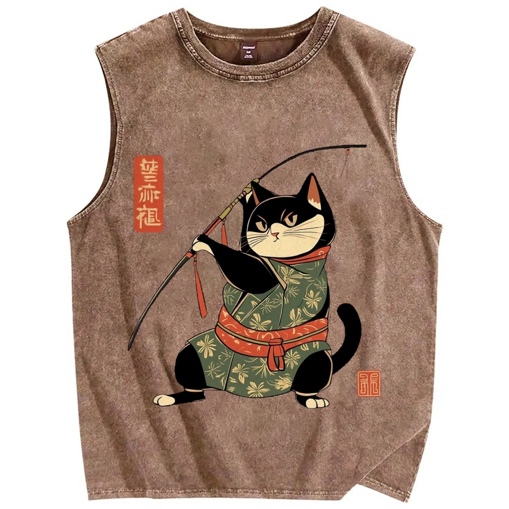 Cat Archer Japanese Traditional Costumes Vintage Distressed Washed Tank Top