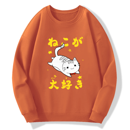 Cute Japanese Cat Cotton Pullover Sweatshirt