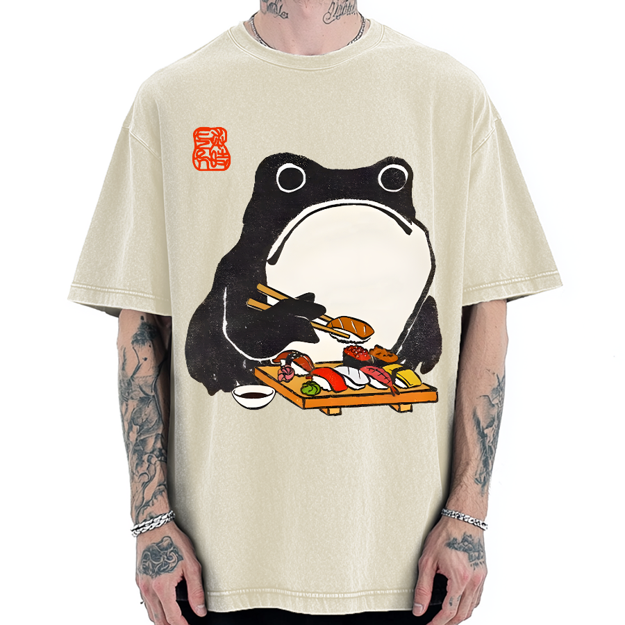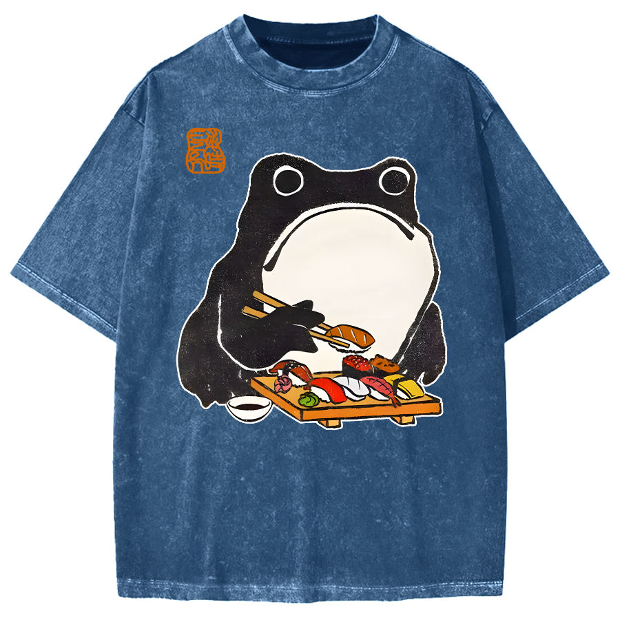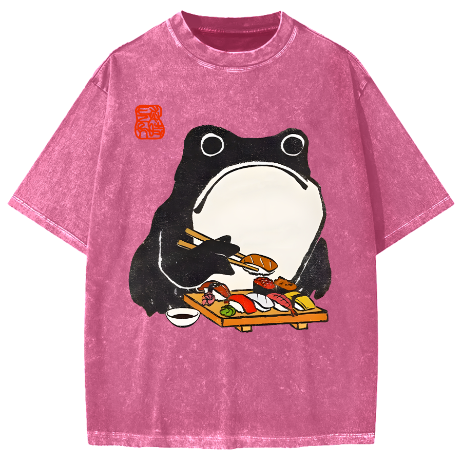 Frog Eating Sushi Vintage Washed T-shirt