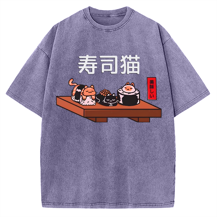 Kawaii Sushi Cats Vintage Washed T-shirt