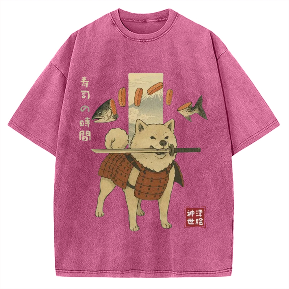 Sushi Salmon Lover Samurai Doge Vintage Washed T-shirt