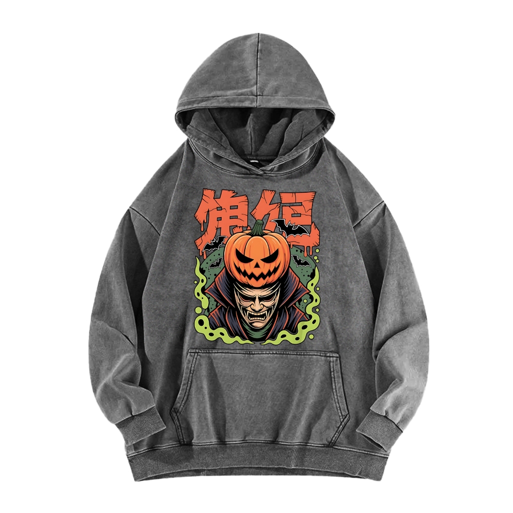 Halloween Pumpkin Yokai Vintage Washed Hoodie