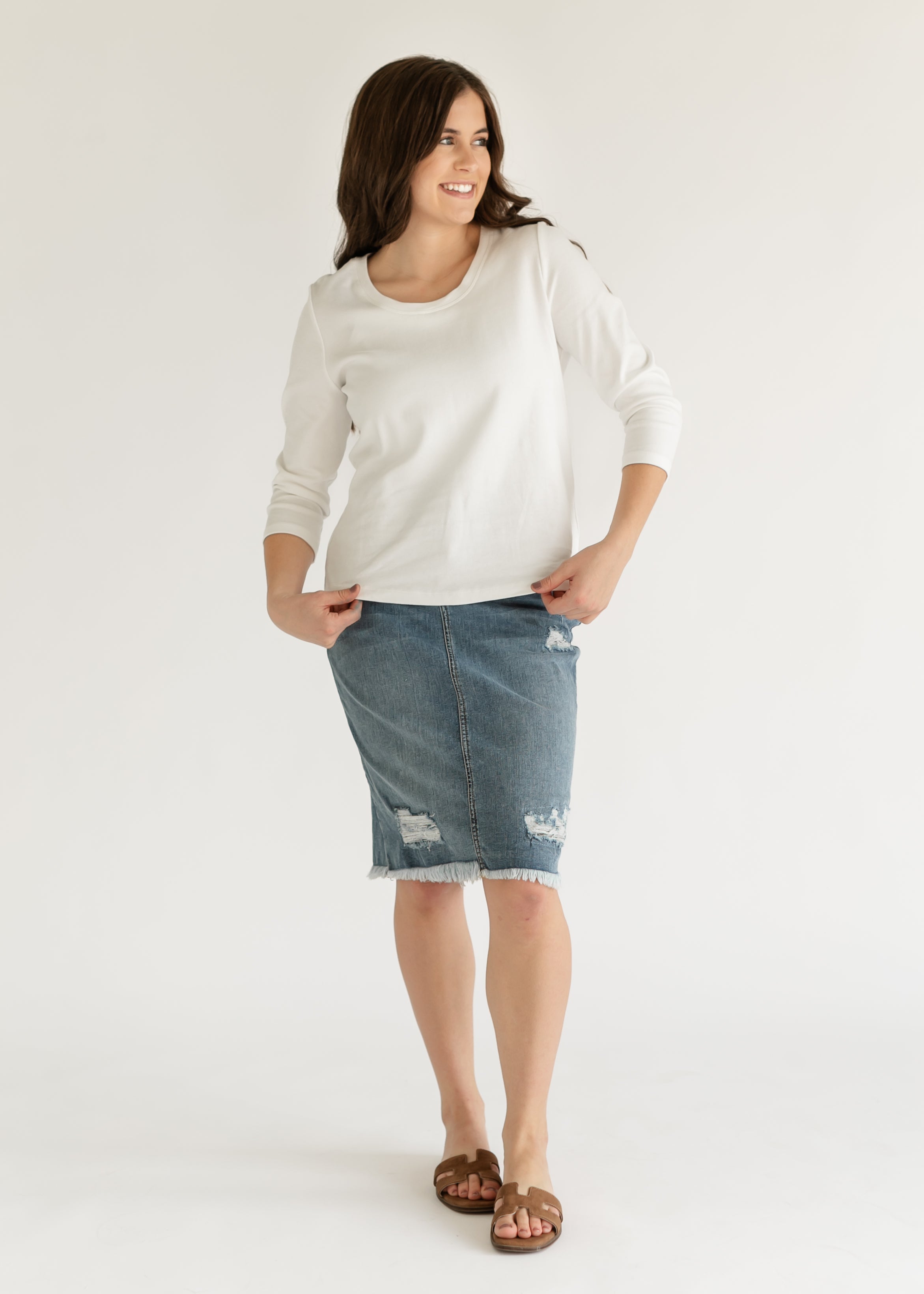 Liverpool Los Angeles® 3/4 Sleeve Scoop Neck Knit Tee - FINAL SALE