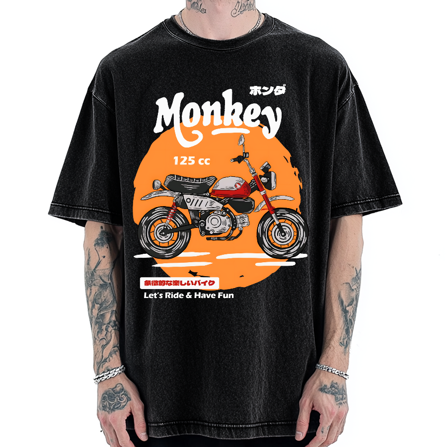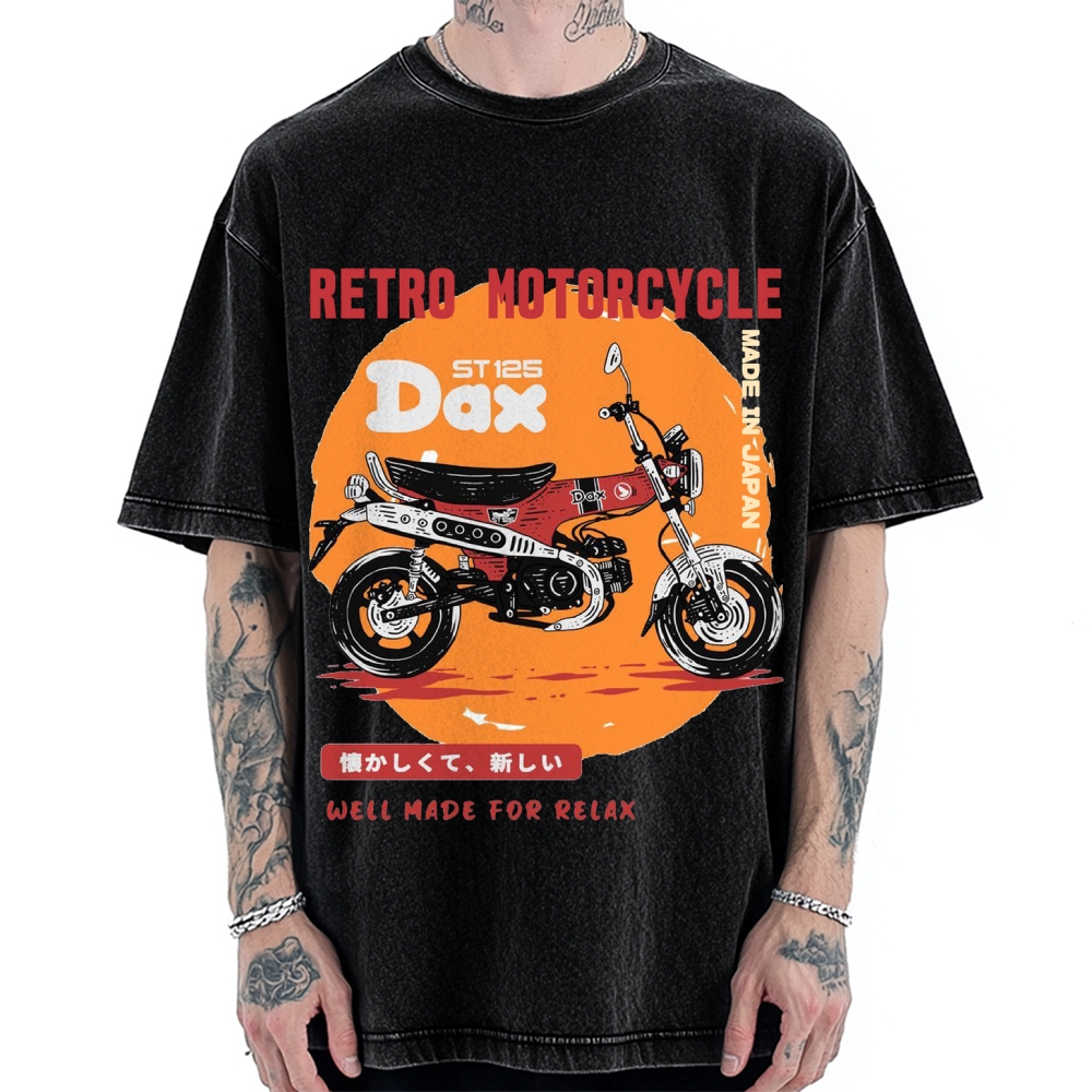 Japan Retro Motorcycle Dax 125 Front And Back Printing Washed T-shirt