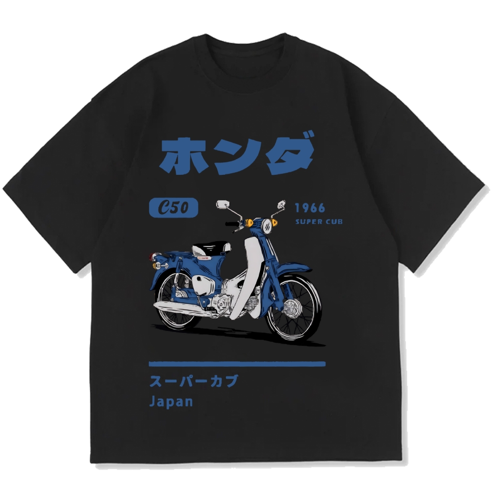 Honda C50 Super Cub Motorcycle Vintage Wash Japanese Design Cotton casual T-shirt