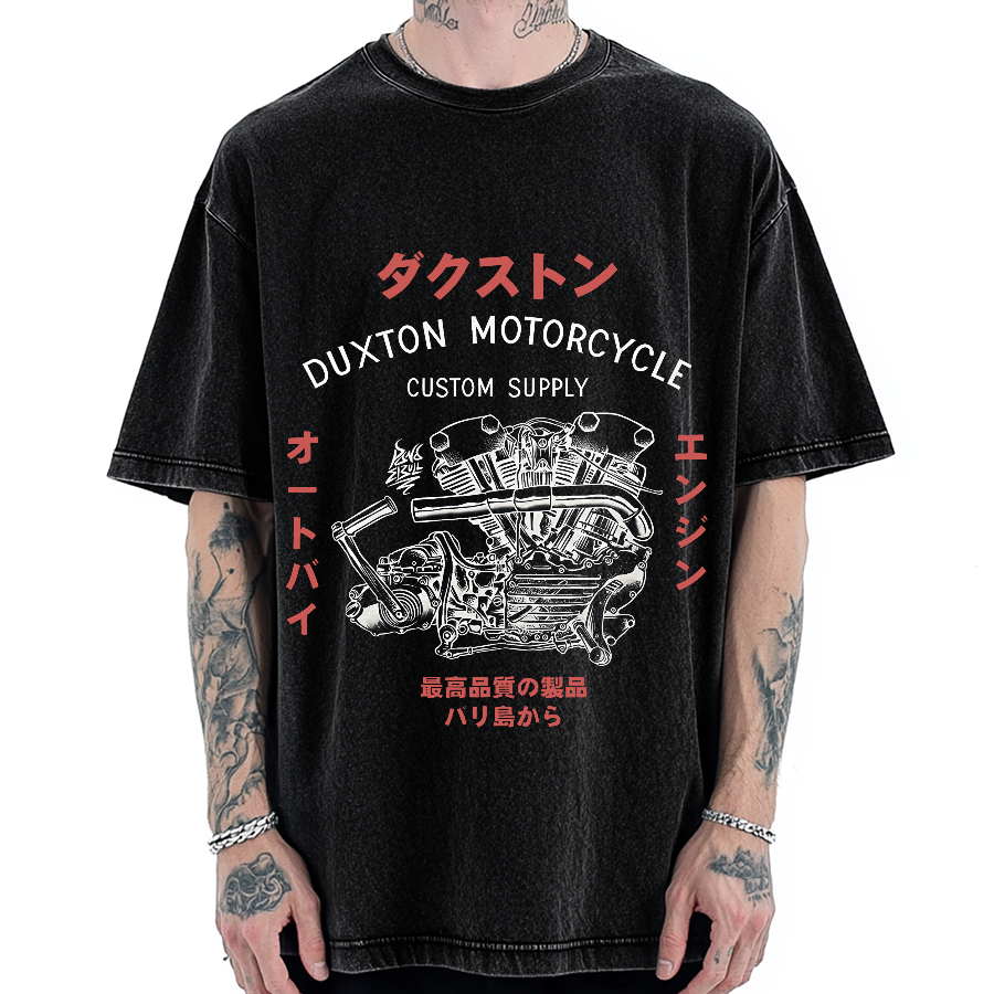 Japanese Retro Motorcycle Japanese Design Vintage Washed T-shirt