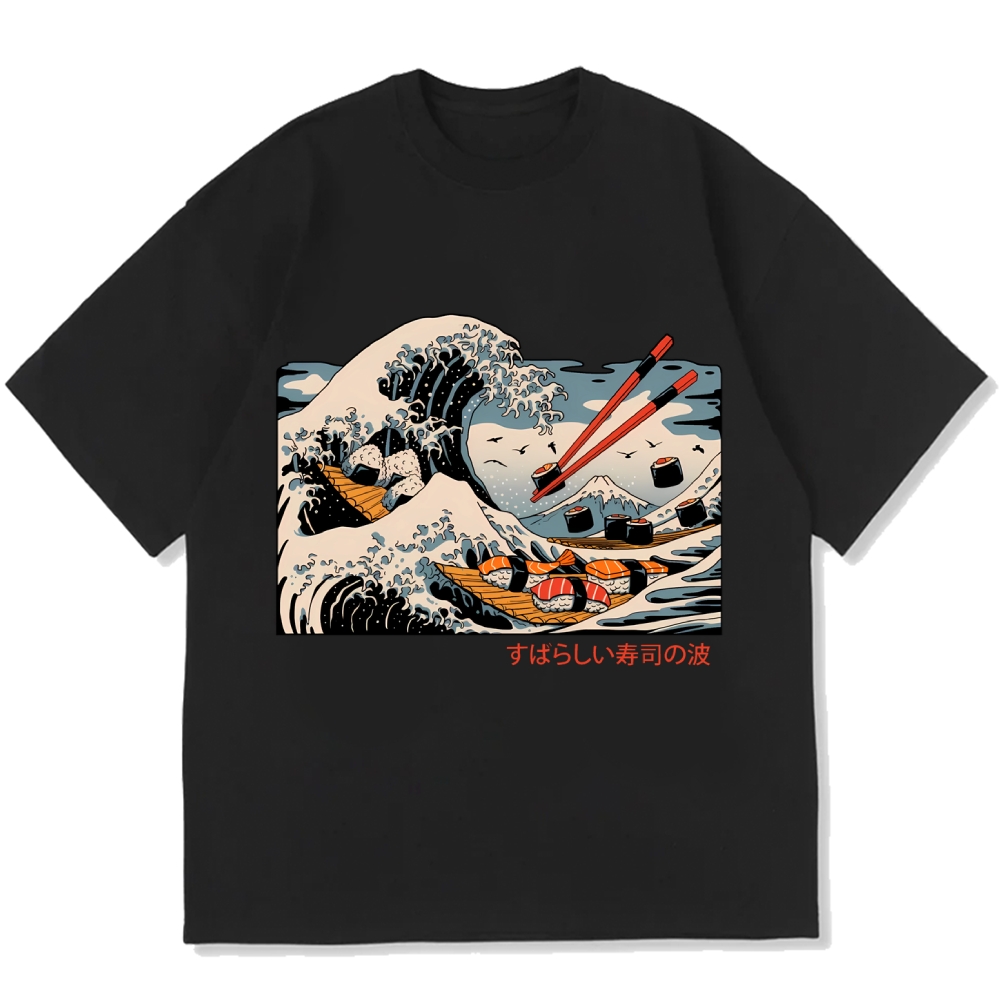 Cat Sushi Wave Vintage Distressed Washed Tank Top