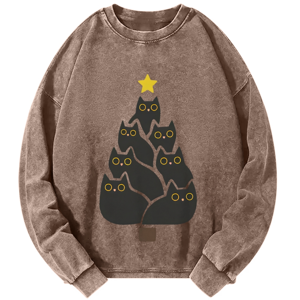 Enjoy Cool Funny Christmas Black Cats Decoration Tree Vintage Washed Sweatshirts