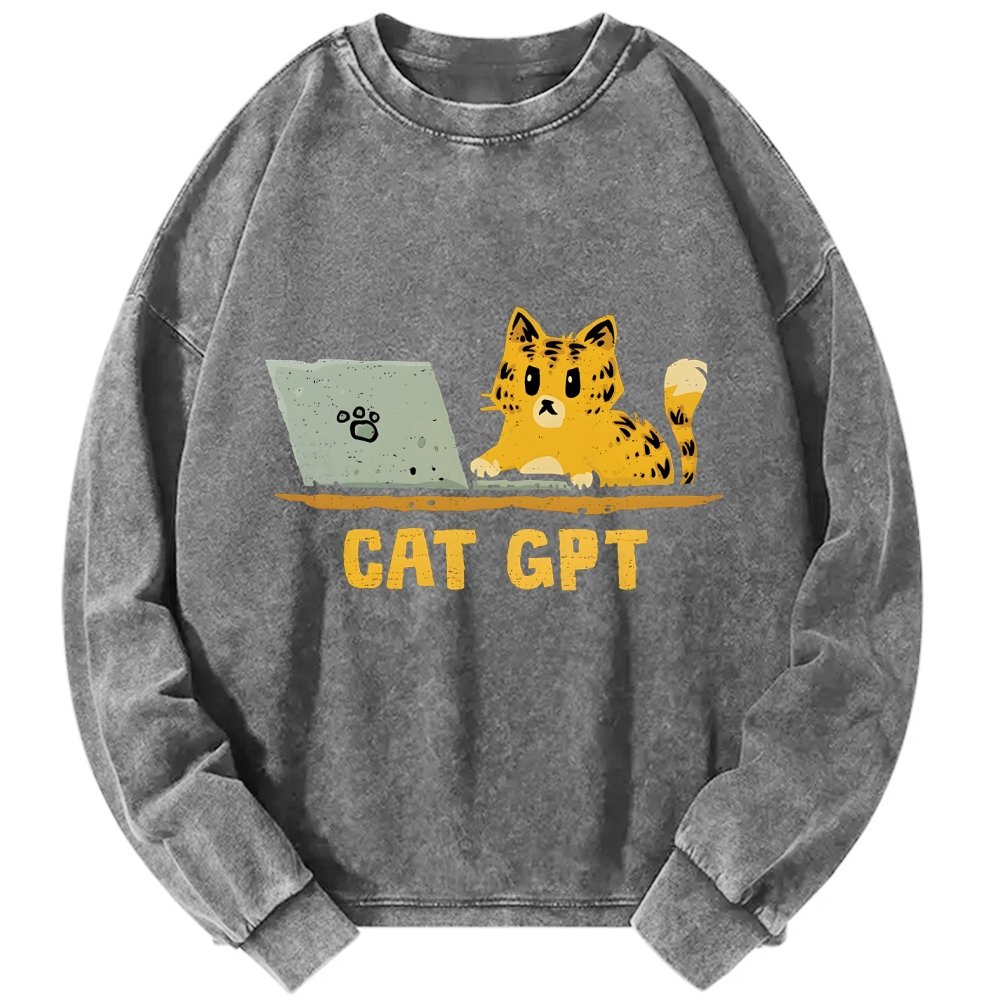 Tokyo Cat Monster Catzilla Vintage Washed Sweatshirts