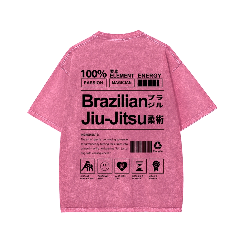 Brazilian Jiu-Jitsu Front And Back Printing Washed T-shirt