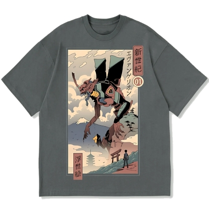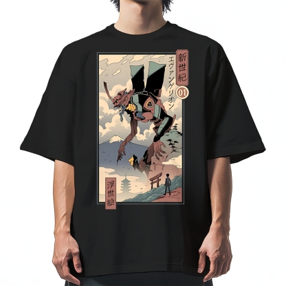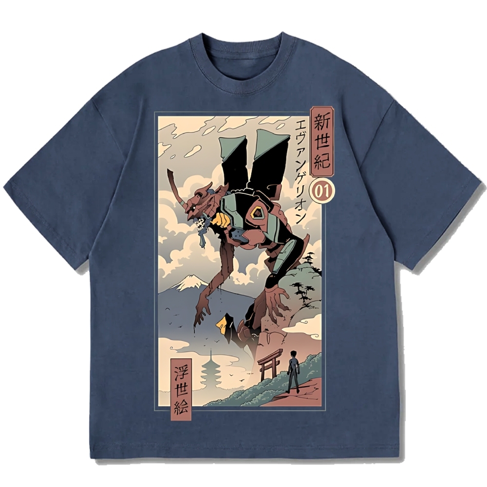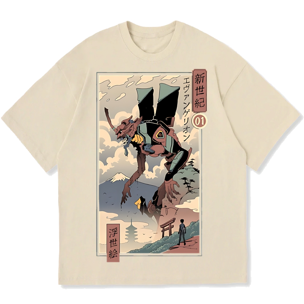 EVA Japanese Ukiyo-e Style Art Cotton casual T-shirt
