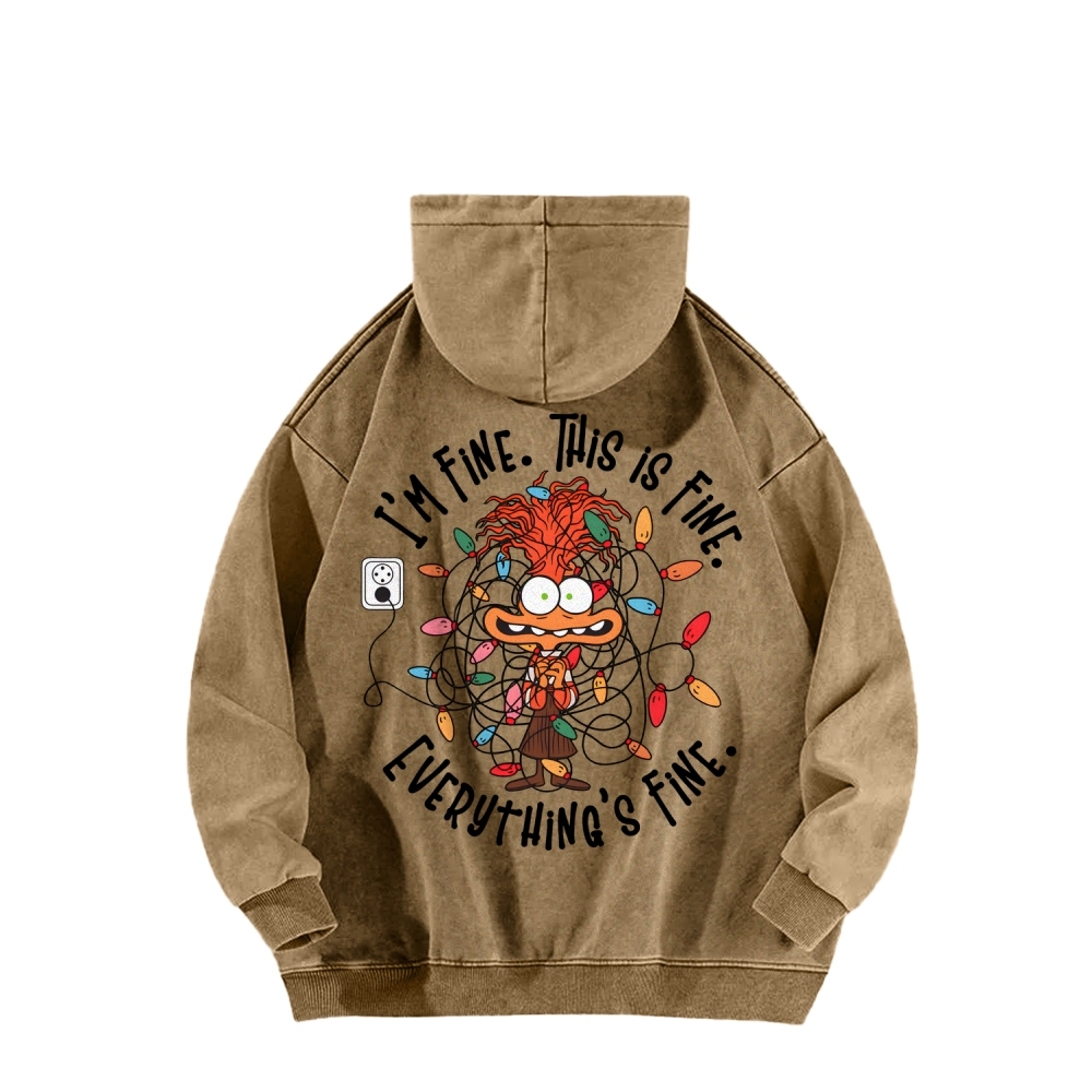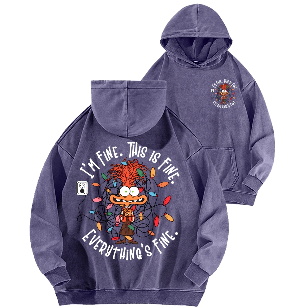 It's Fine This Is Fine Everything Is Fine Christmas Light Front And Back Printing Vintage Washed Hoodie