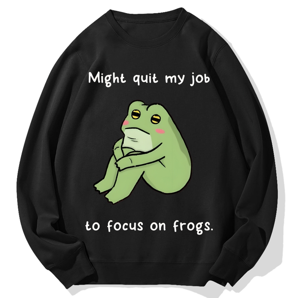 Might Quit My Job Meme Frog Cotton Sweatshirt