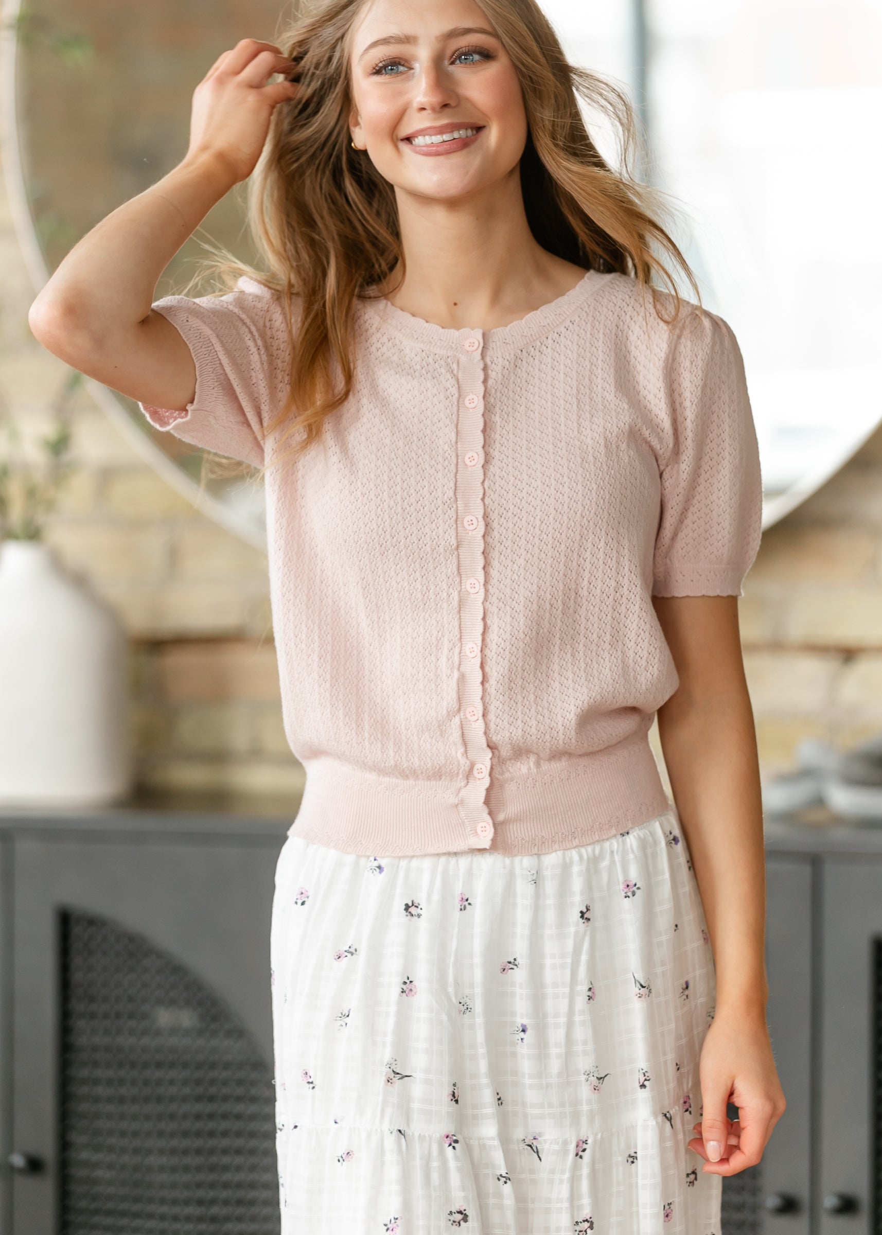 Short Sleeve Button Down Cream Cardigan$42.00 USD