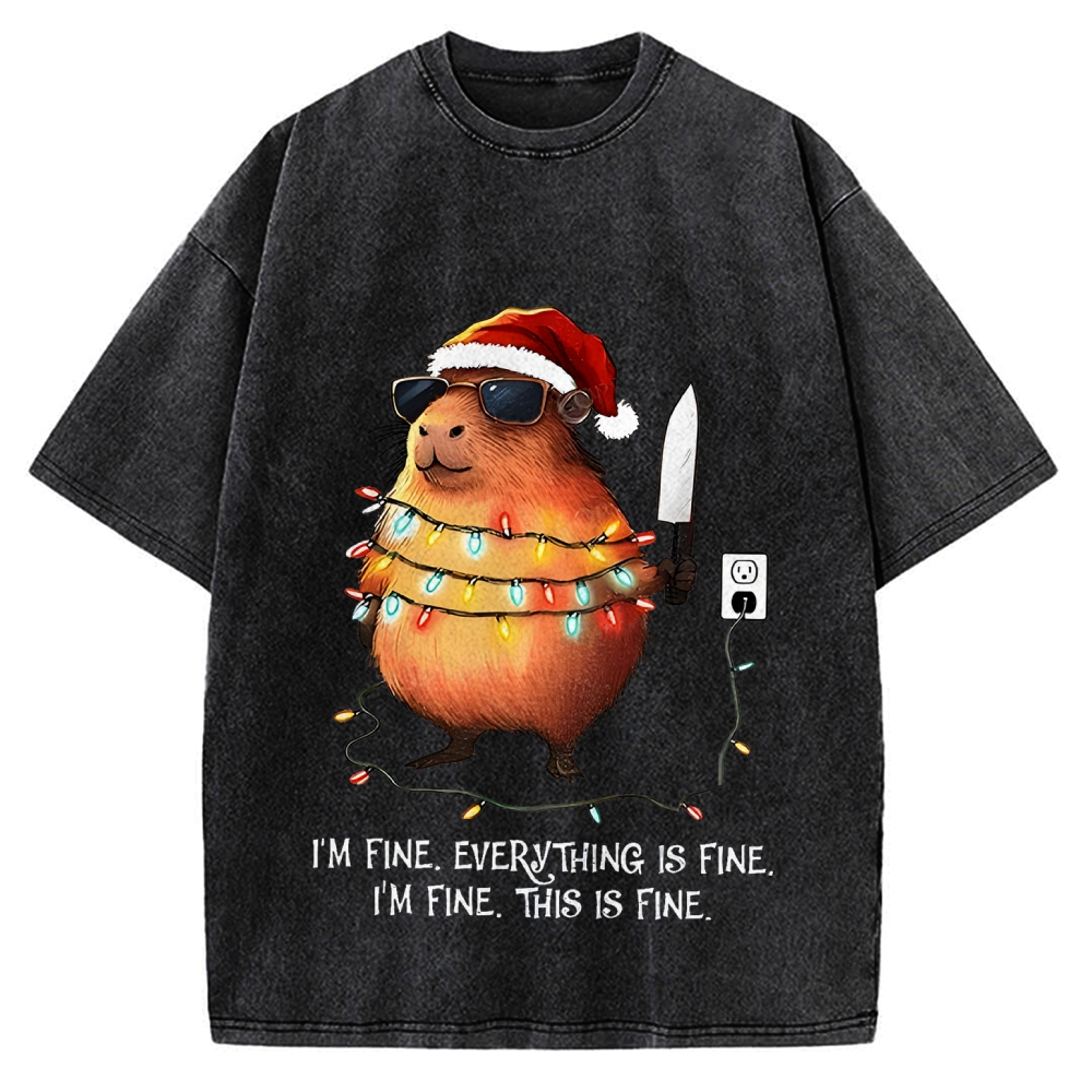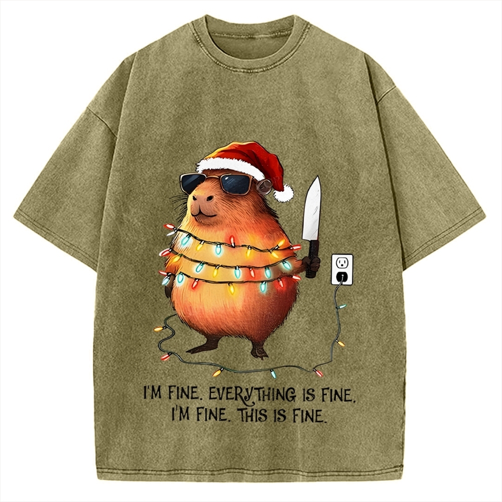 Capybara I'm fine everything is fine I'm fine this is fine Merry Christmas Vintage Washed T-shirt