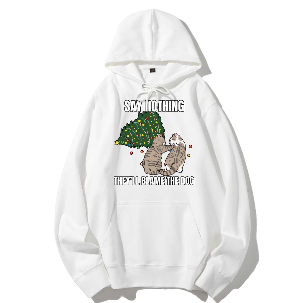 Christmas Cat meme blame the dog Cotton Hoodie
