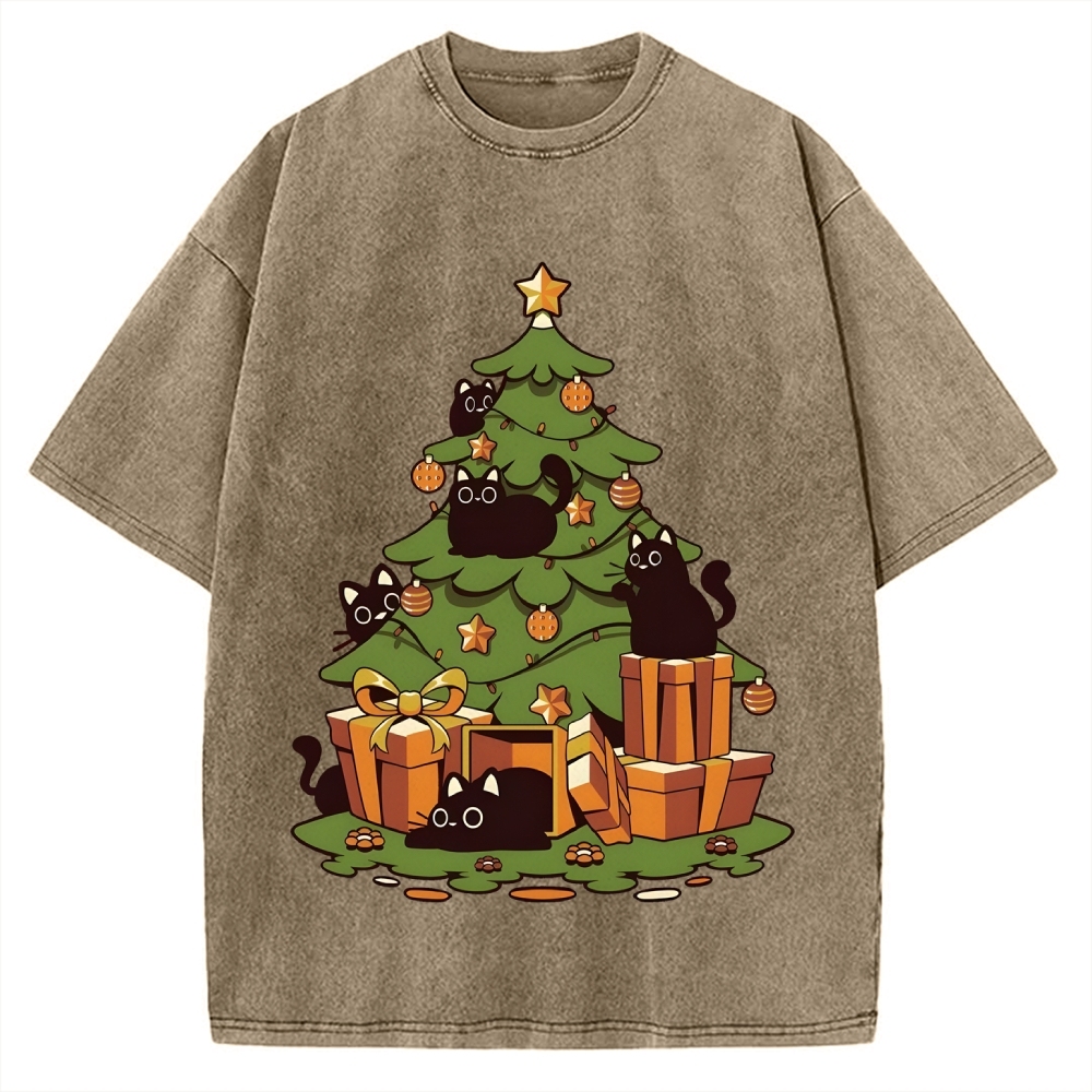 Christmas Cat Tree Vintage Washed T-shirt