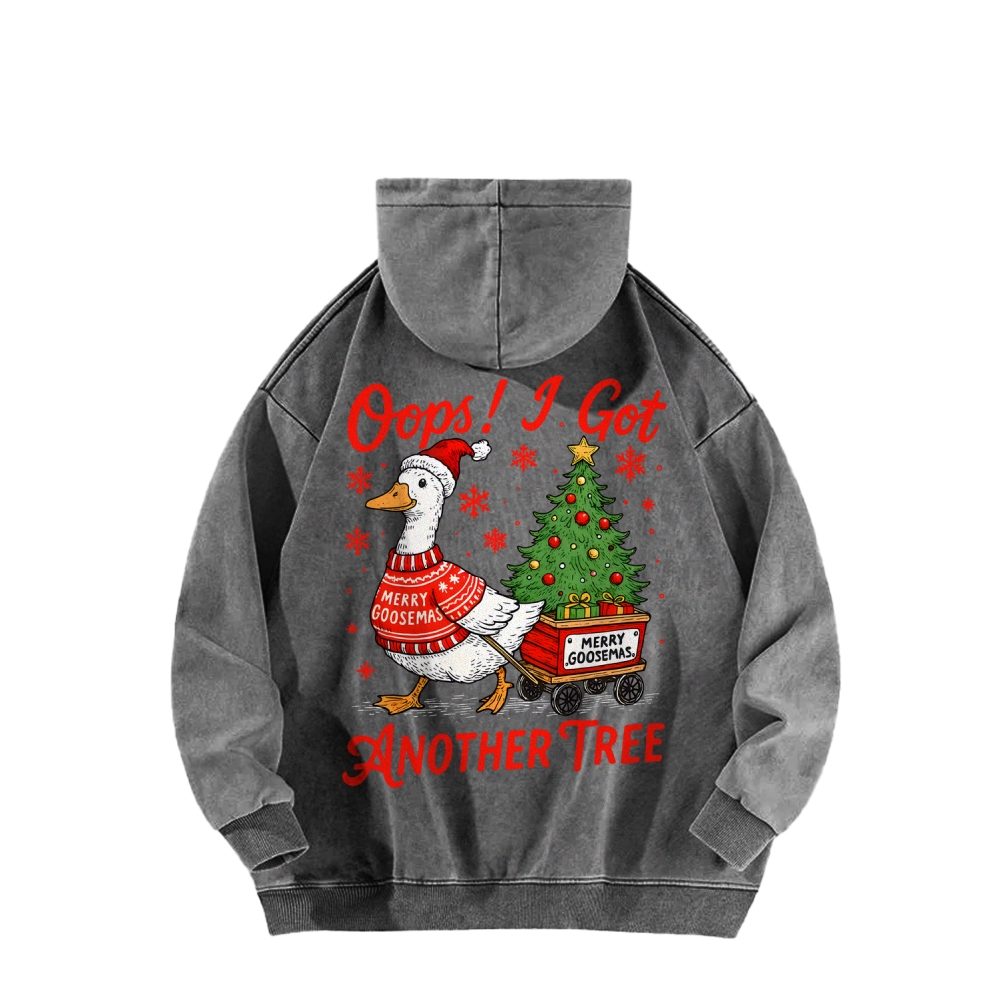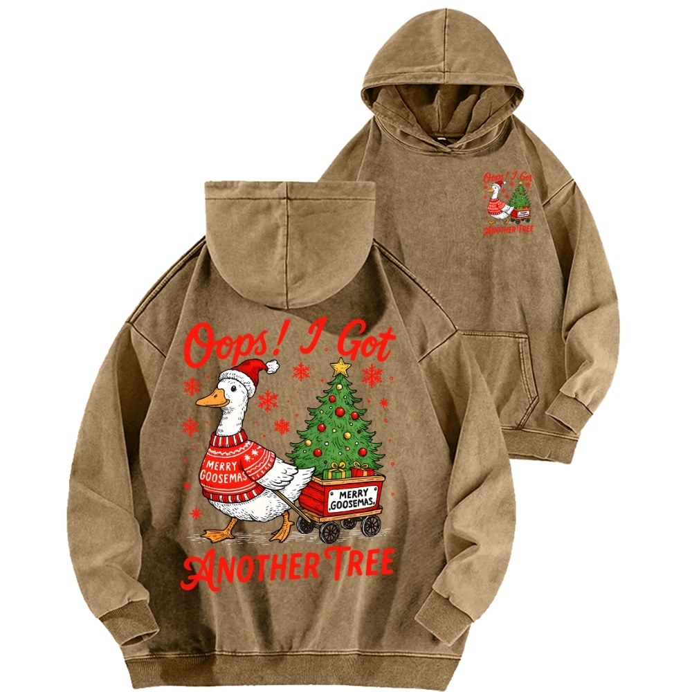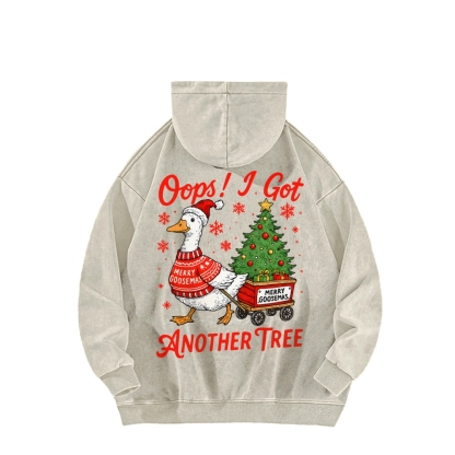 Oops I Got Another Tree Funny Christmas Goose Front And Back Printing Vintage Washed Hoodie