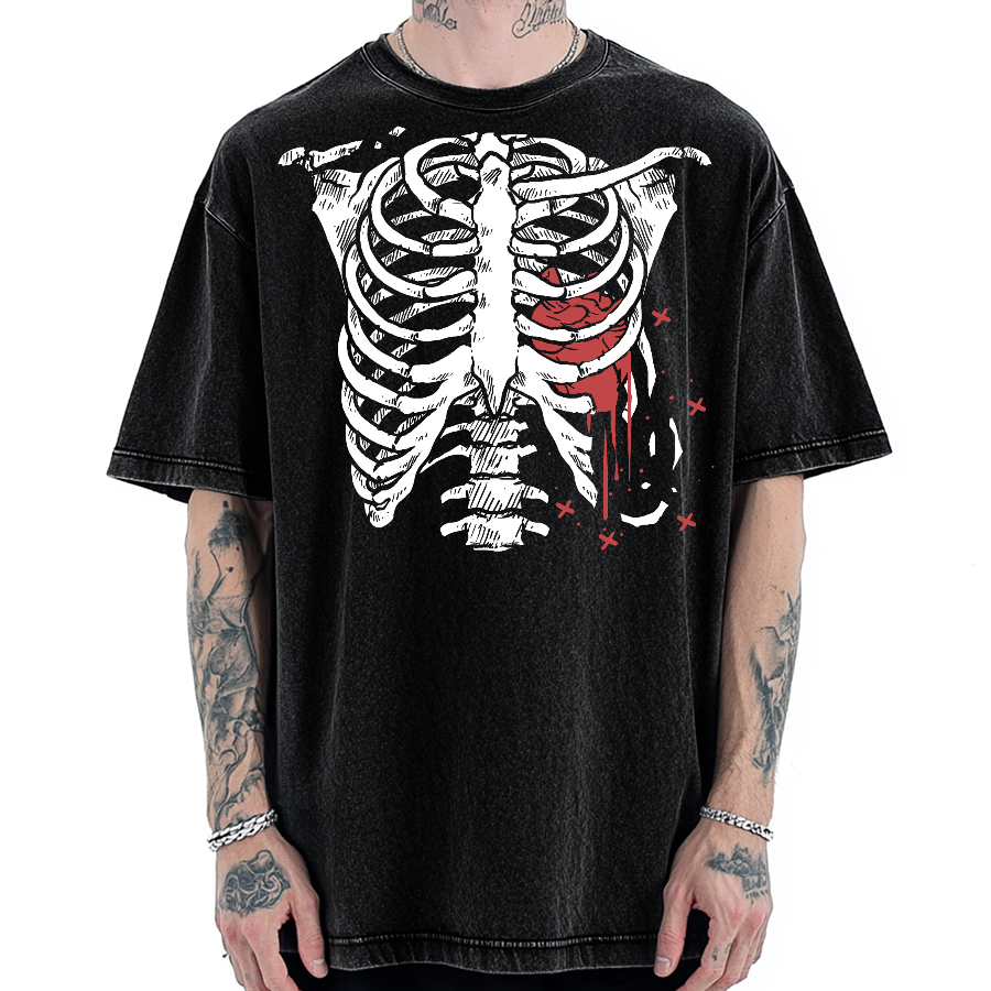 Broken Heart Skeleton Vintage Washed T-shirt