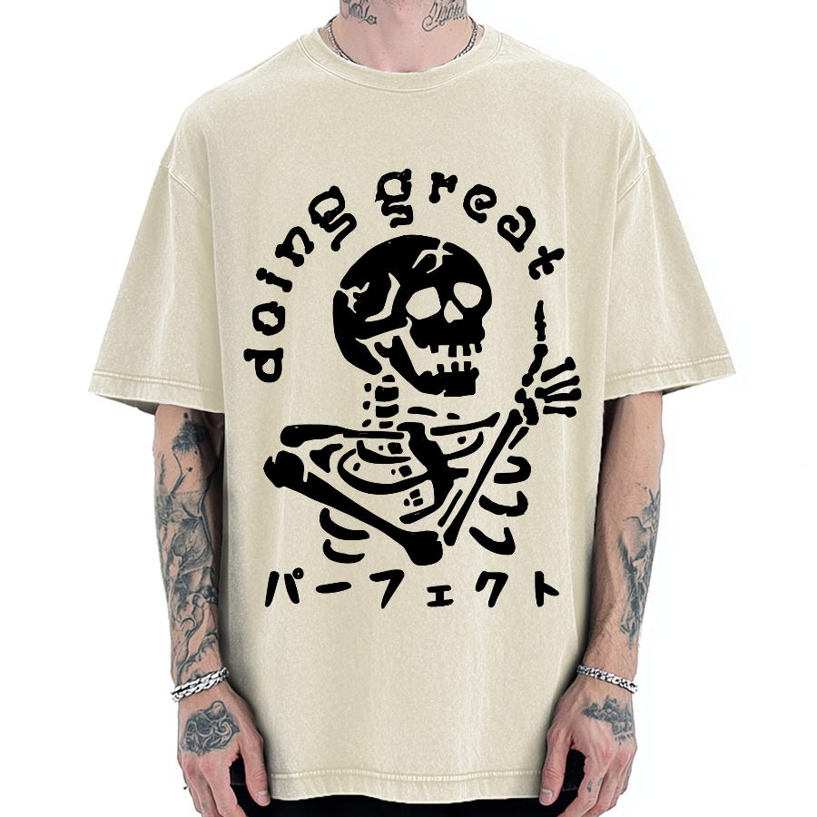 Japanese Ukiyo-e Skeleton Vintage Washed T-shirt