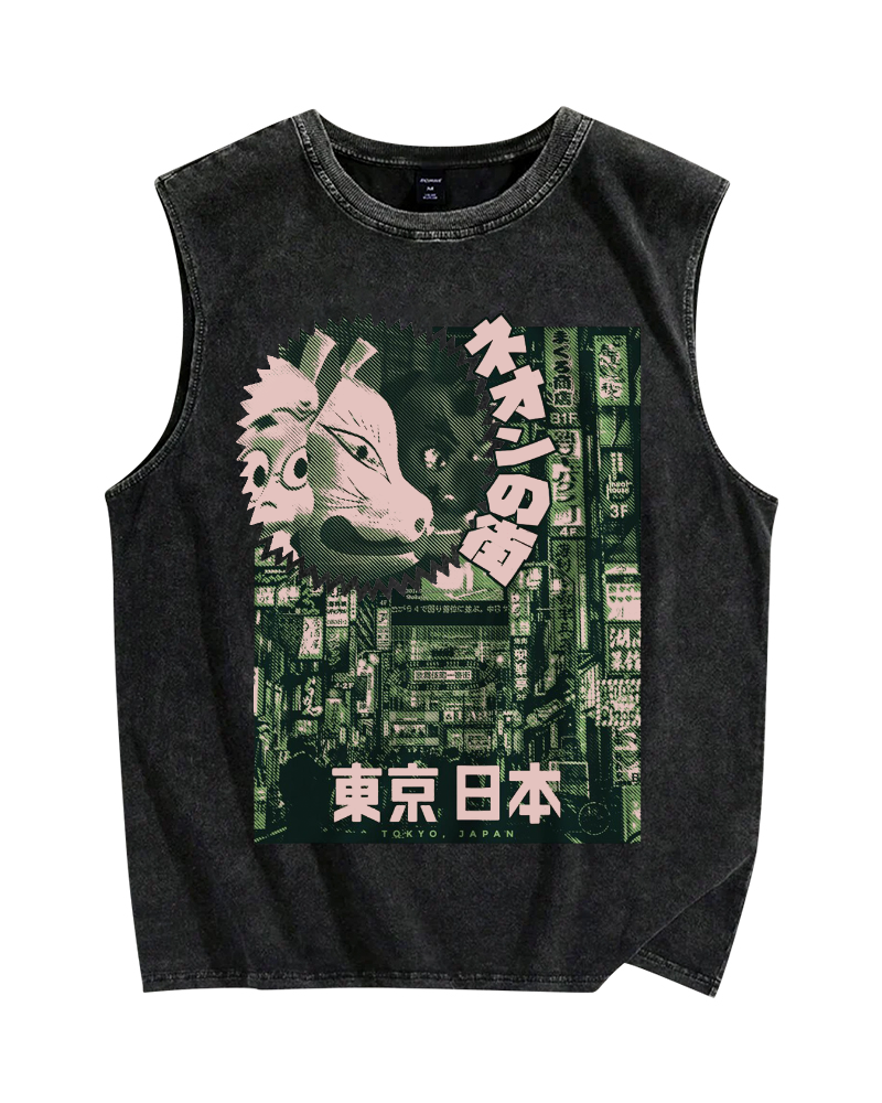 Neon city Tokyo Vintage Distressed Washed Tank Top