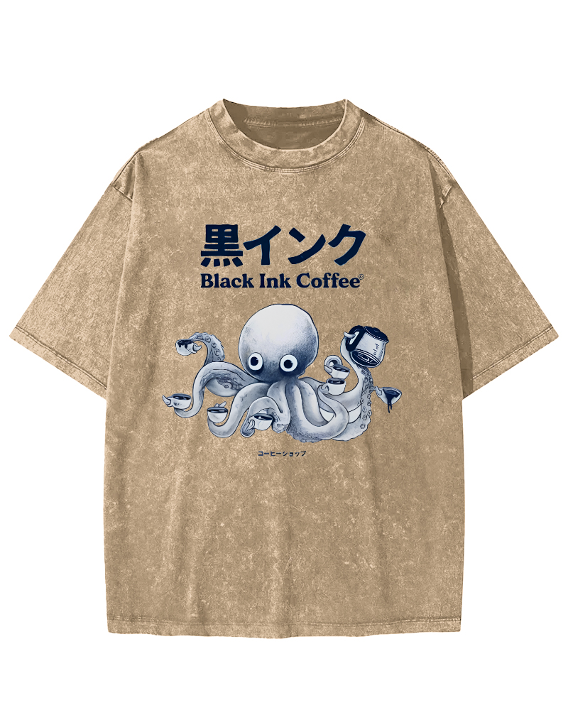 Black Ink Coffee Octopus Japan Vintage Washed T-shirt