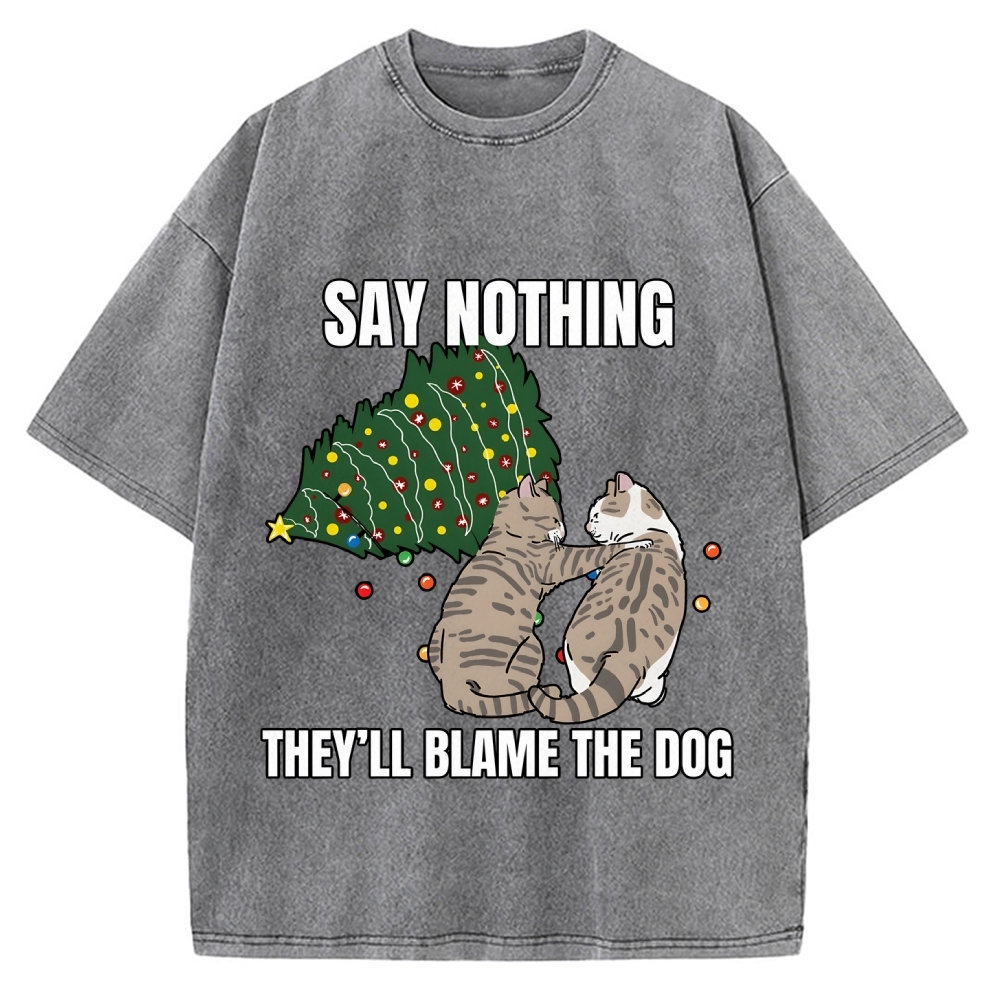 Christmas Cat meme blame the dog Vintage Washed T-shirt