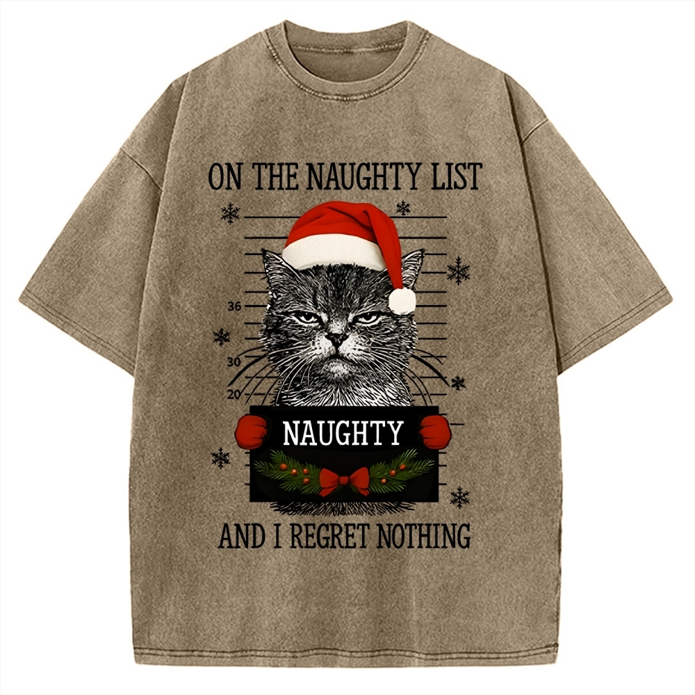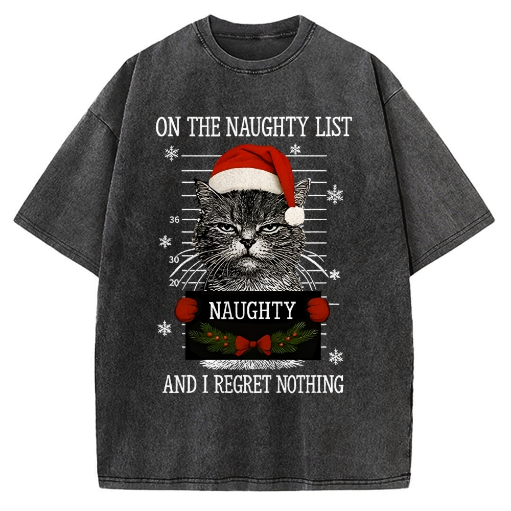 Christmas Naughty Cat Vintage Washed T-shirt