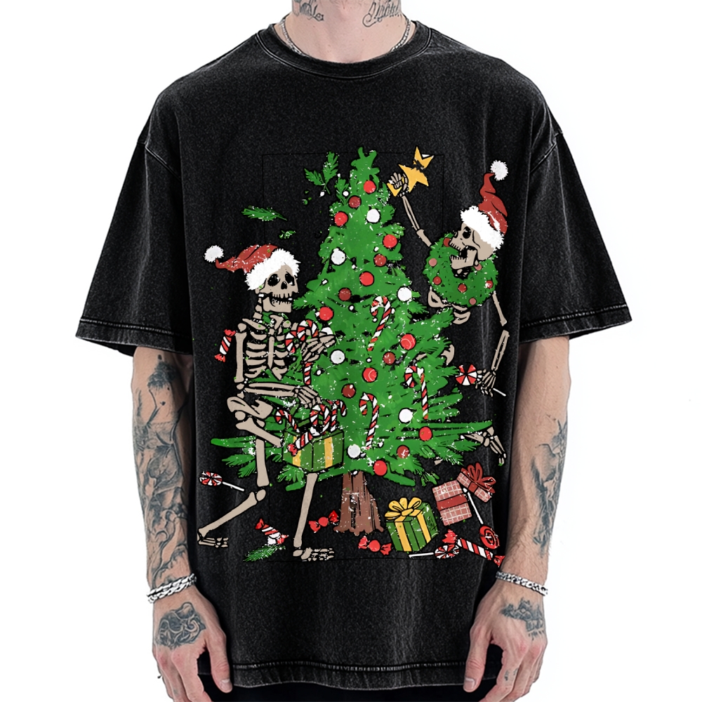 Christmas Tree Skeletons Vintage Washed T-shirt
