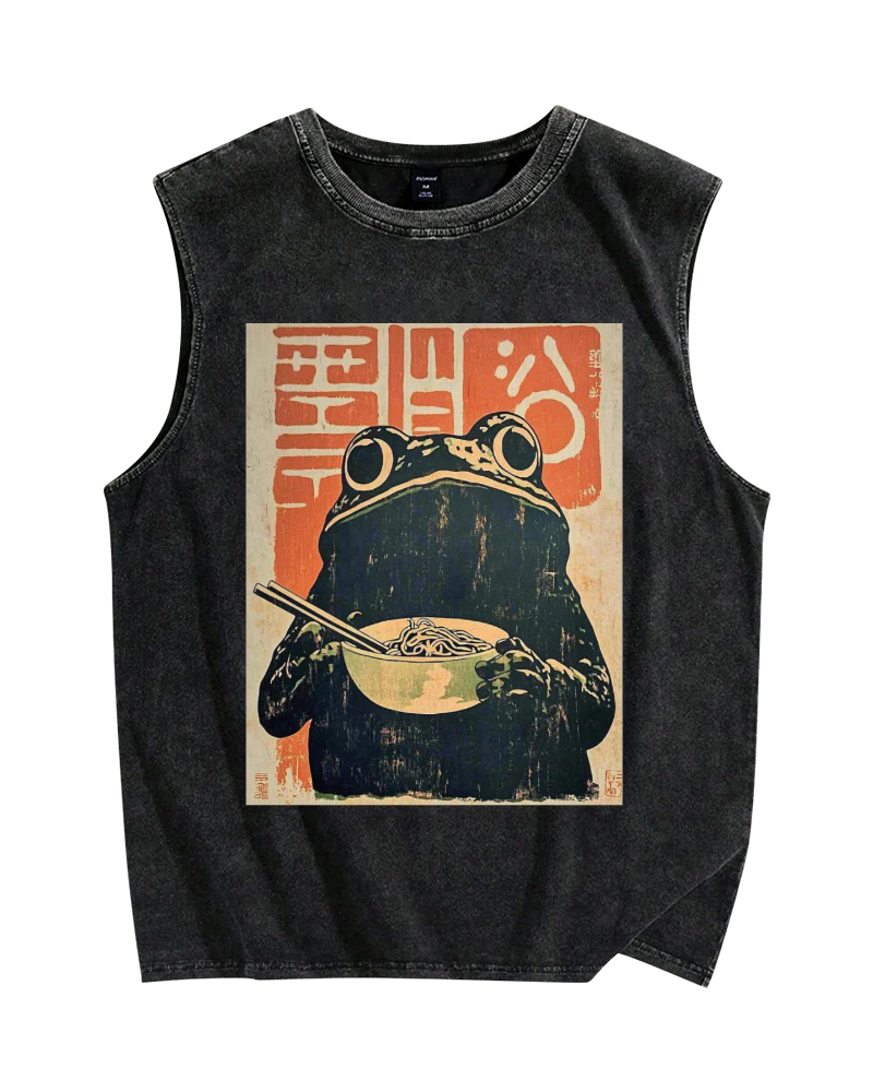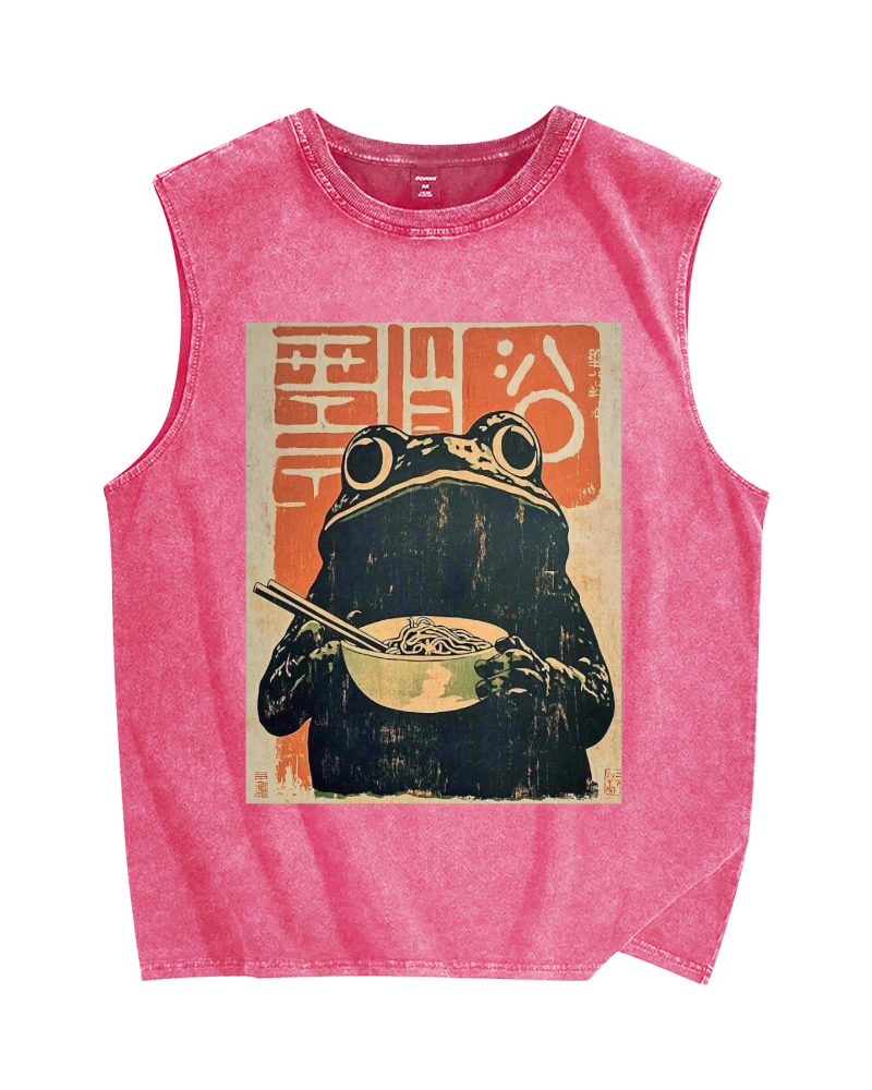 Frog Eating Ramen Vintage Distressed Washed Tank Top