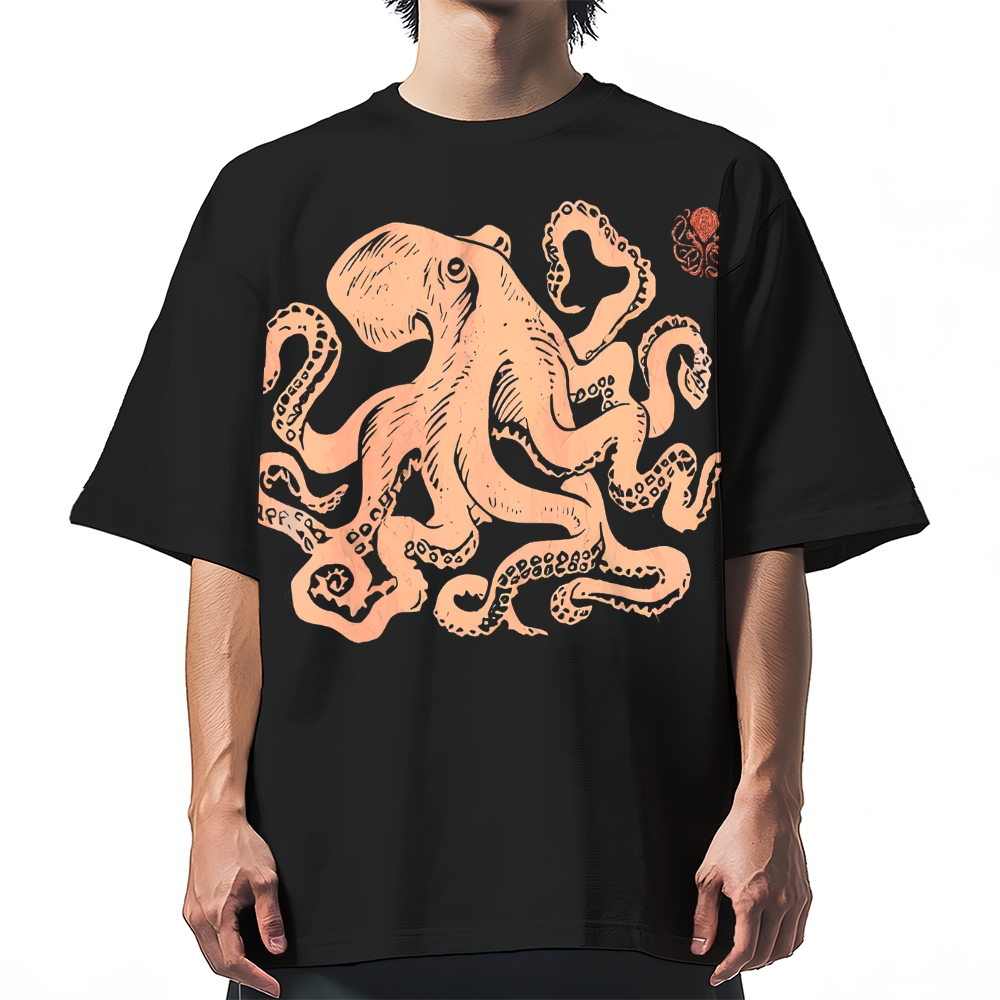 Japanese deep sea octopus Ink painting Cotton casual T-shirt