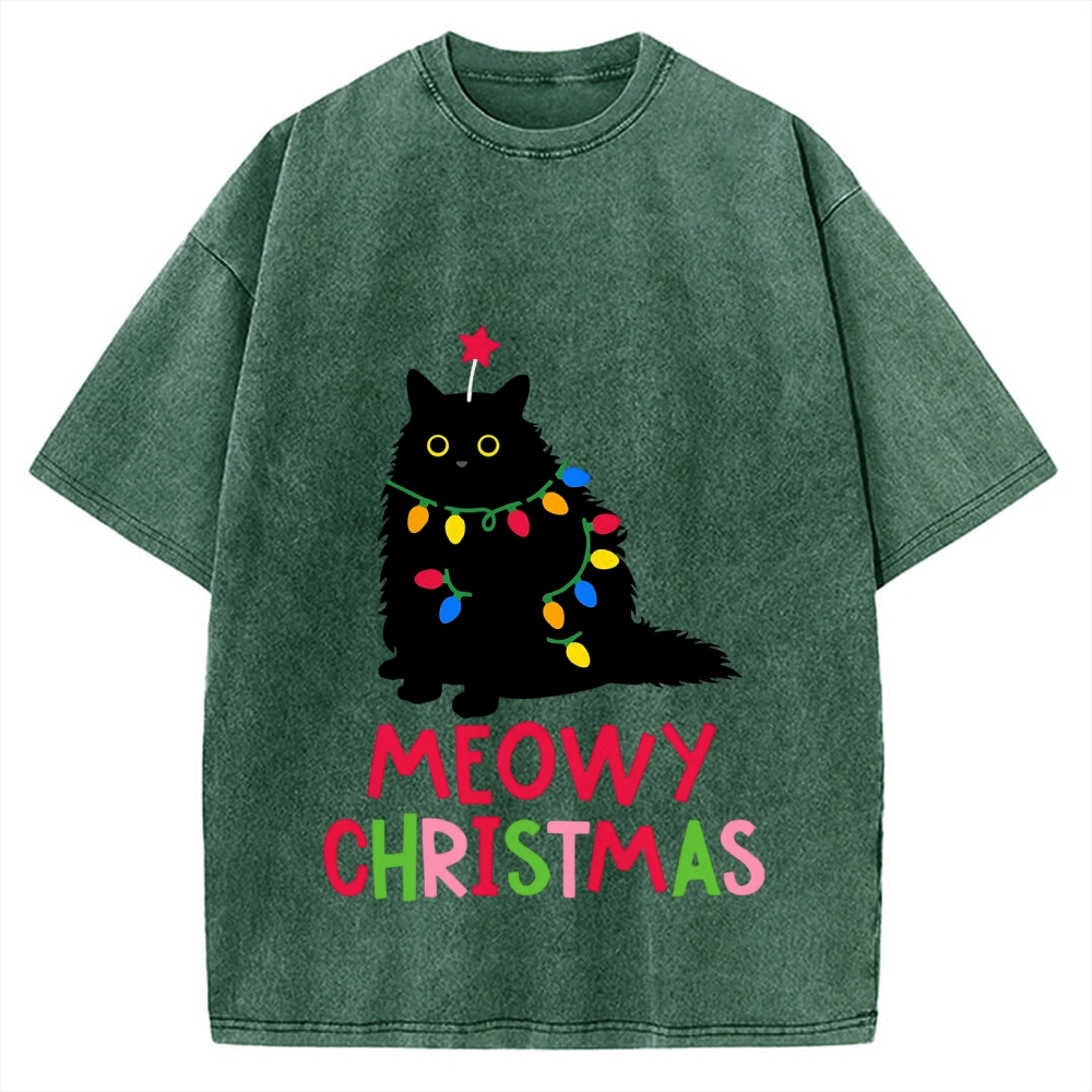 Meowy Christmas Funny Black Cat Vintage Washed T-shirt