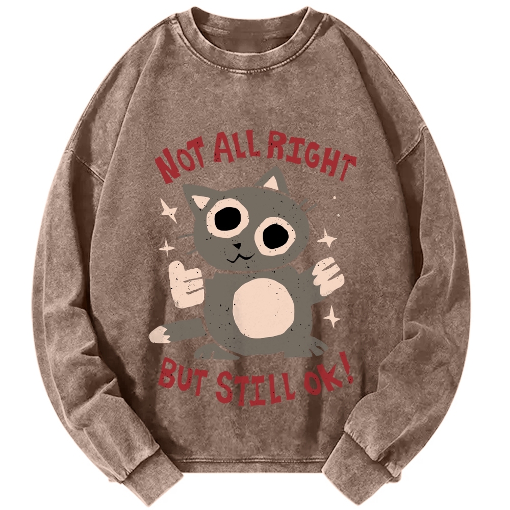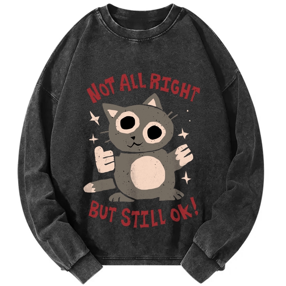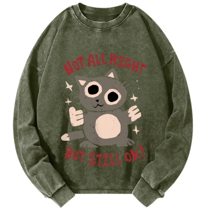Not All Right But Still Ok Funny Cat Vintage Washed Sweatshirts