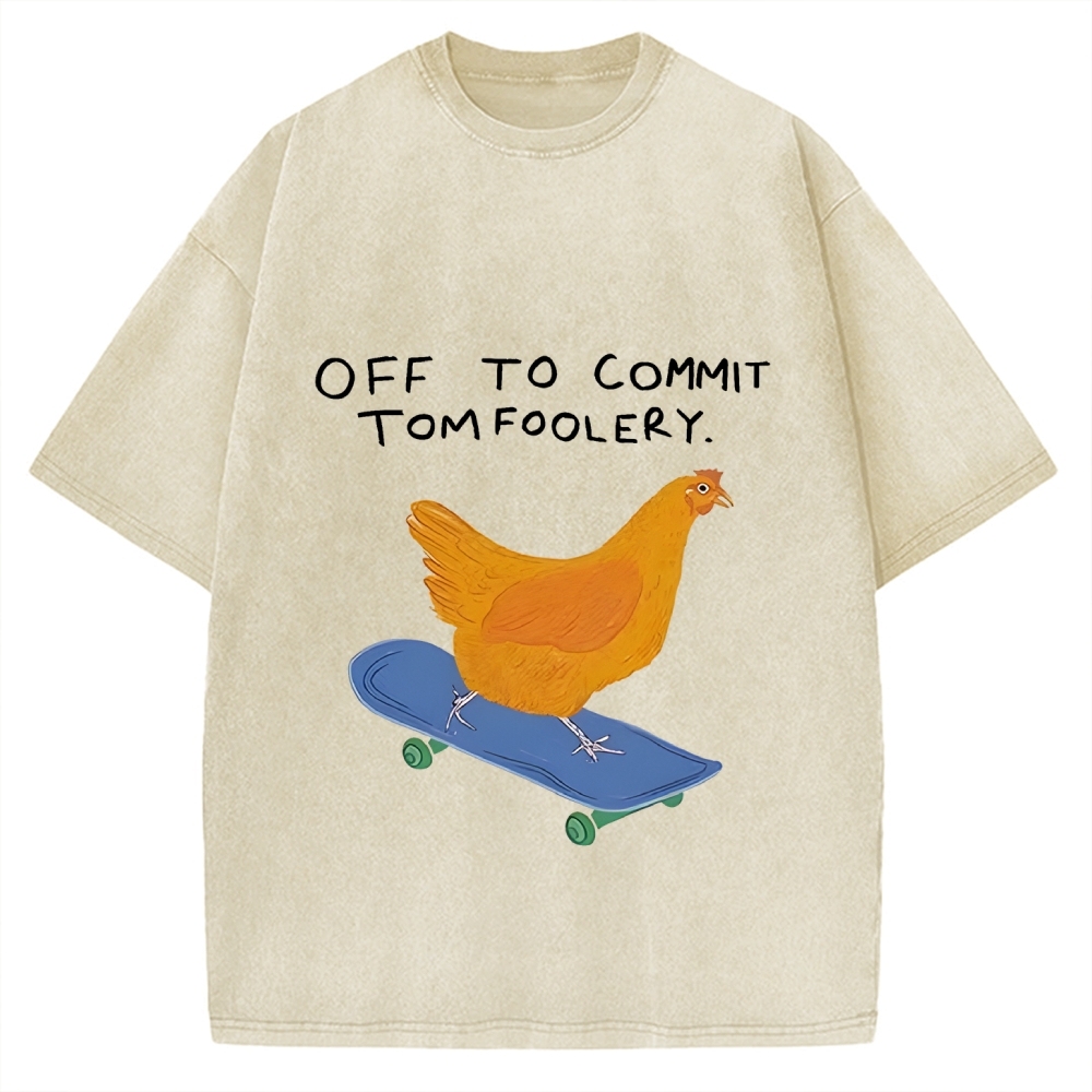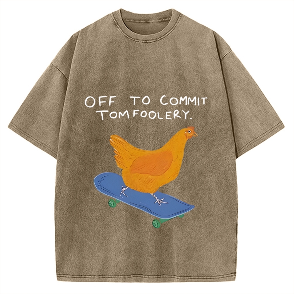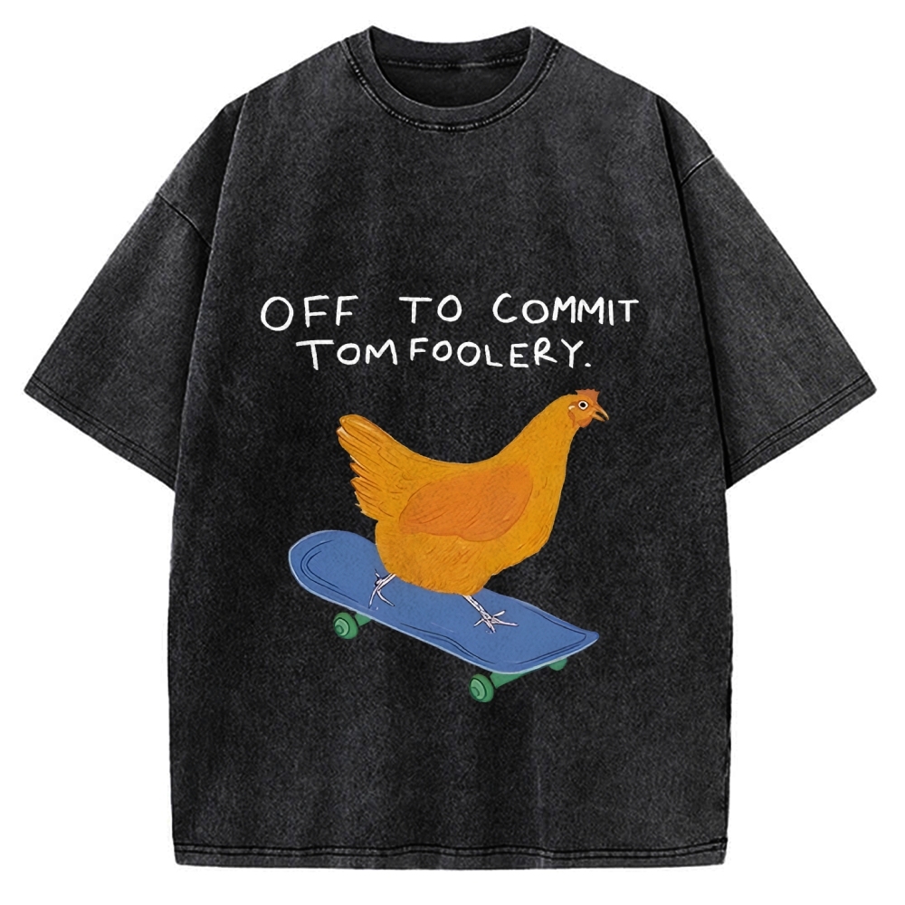 Off to Commit Tomfoolery Chicken on a Skateboard Vintage Washed T-shirt