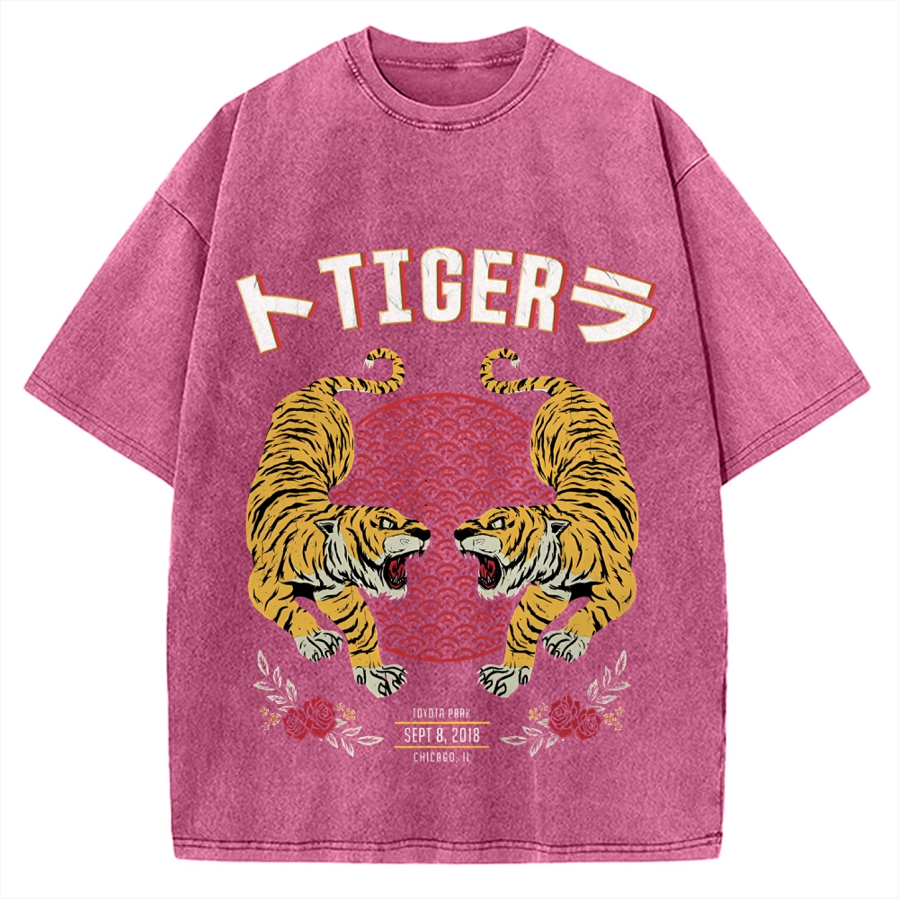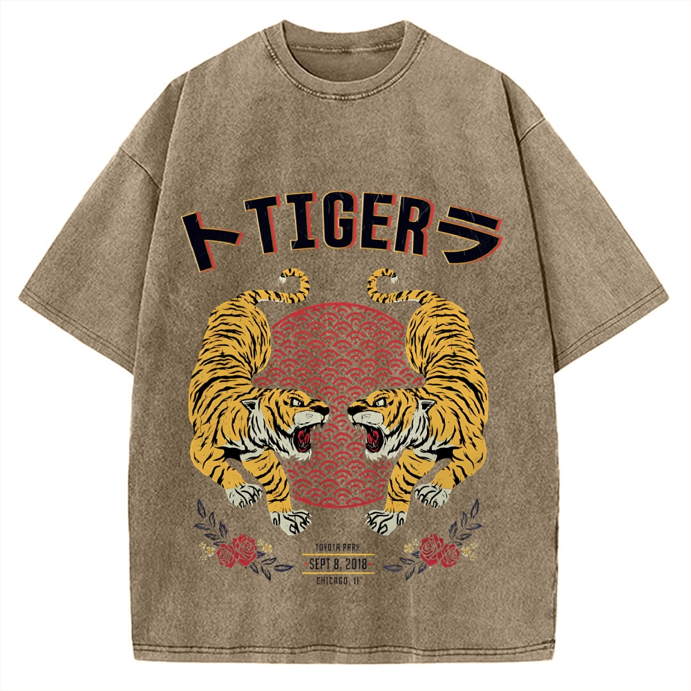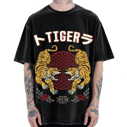 Tigers JApanese Style Art Vintage Washed T-shirt