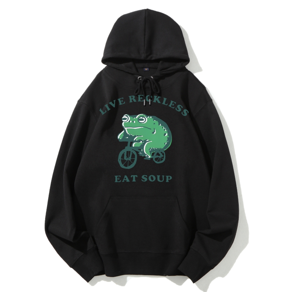 Live reckless eat soup biking frog Cotton Hoodie
