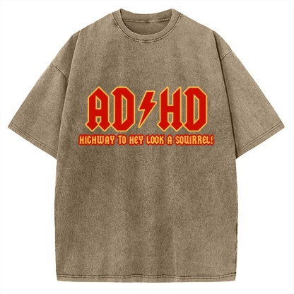 ADHD Highway To Hey Look A Squirrel Music Vintage Washed T-shirt